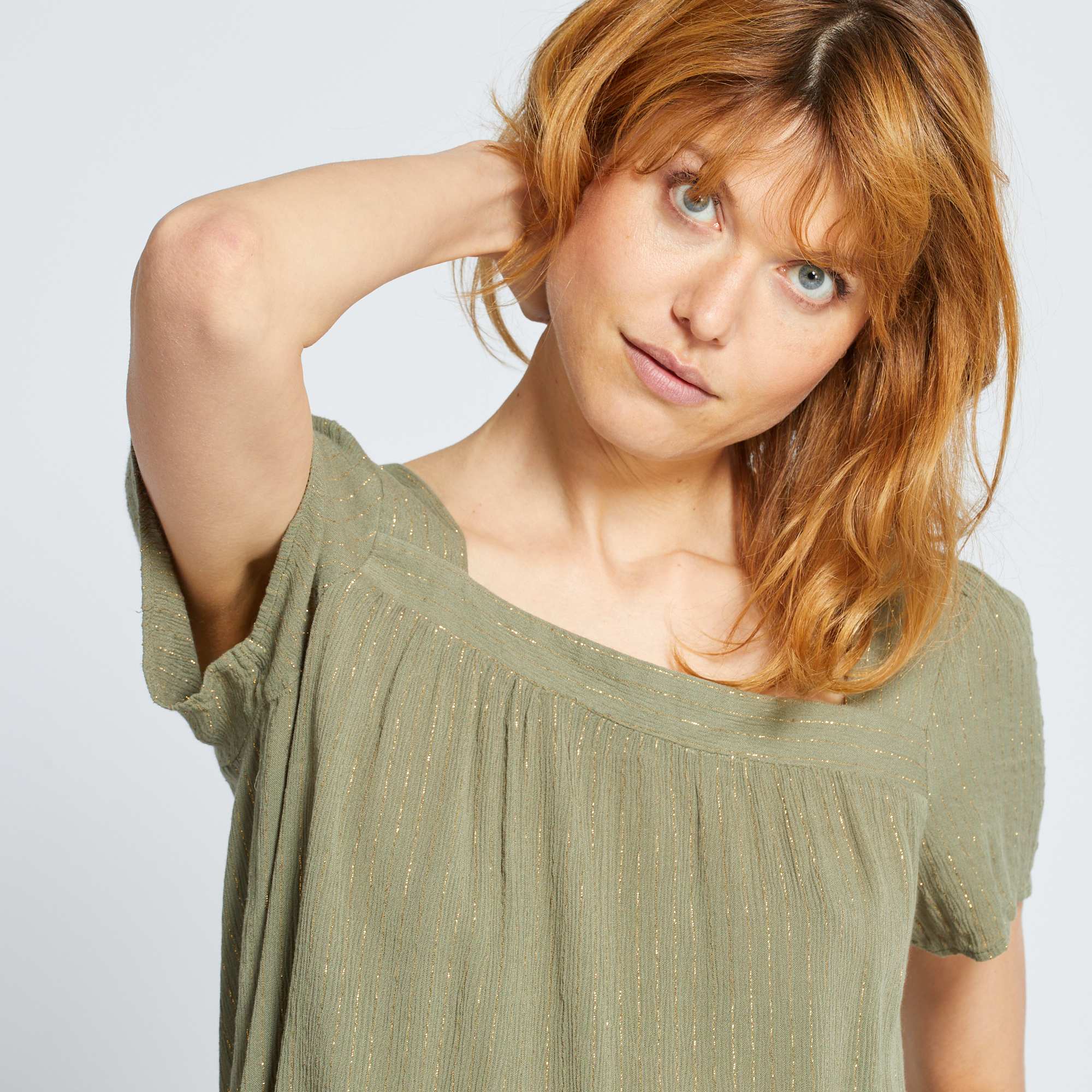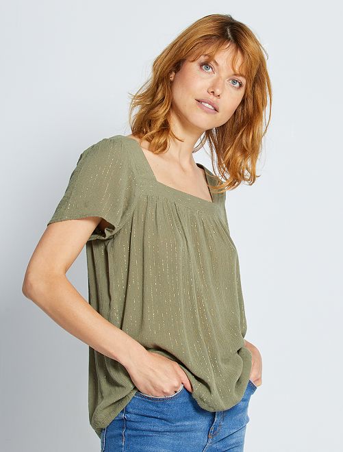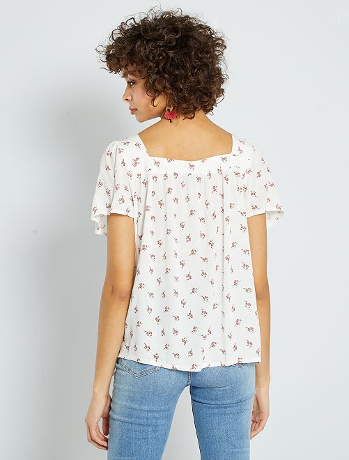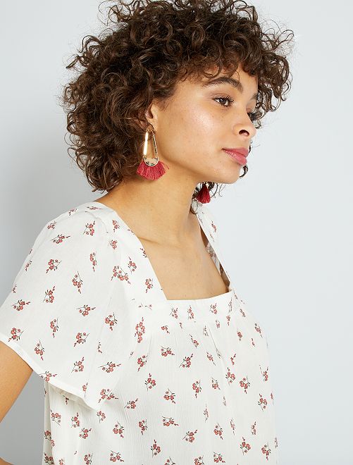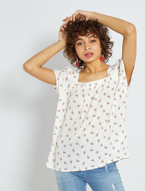 Um visual boémio romântico para esta blusa em tecido crepe, delicadamente sublinhada por um estampado flores. O decote quadrado valoriza todas as silhuetas.