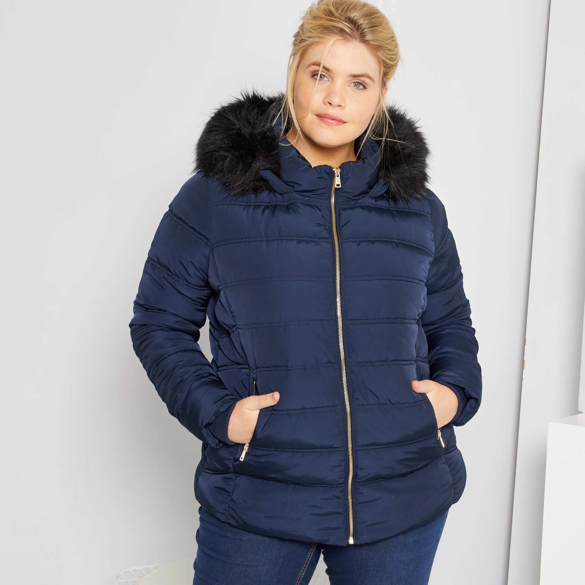 - Imitação de pelo amovível no capuz
