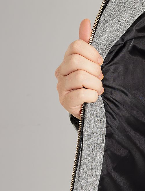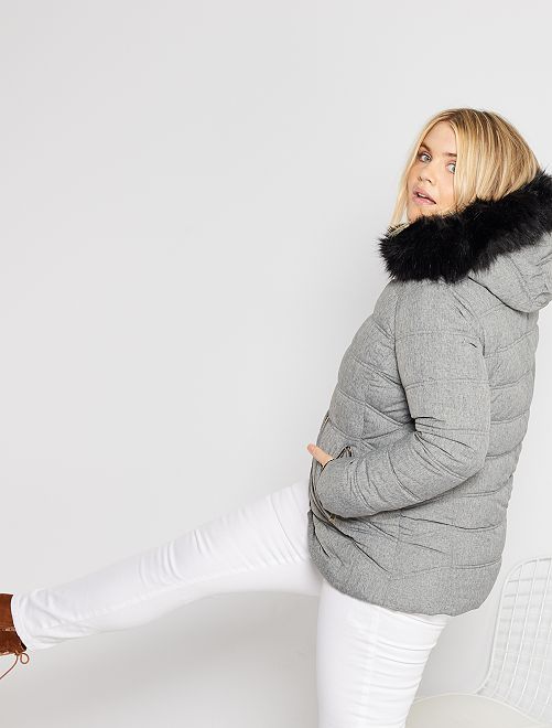 Forro 100% poliester, acolchoamento 100% poliester, acima 100% poliester, matéria 2 71% acrílico, 15% modacrílica, 14% poliester, matéria 3 98% poliester, 2% elastano