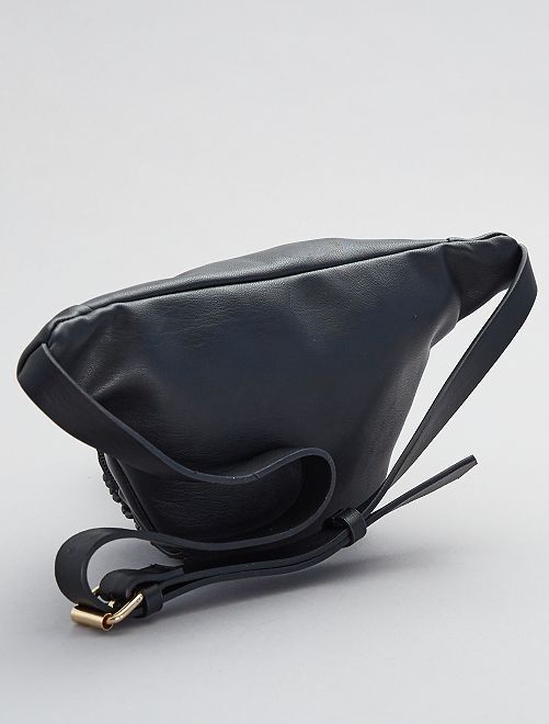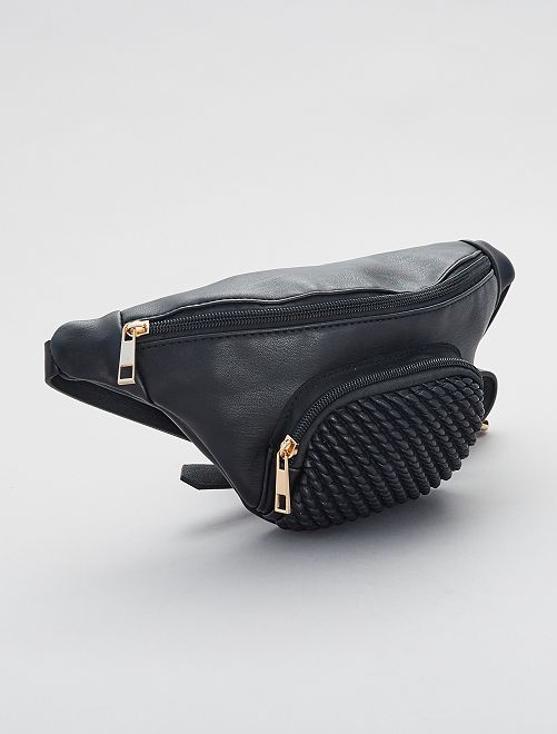 Uma bolsa de cintura em pele sintética suave, com um bolso em relevo fantasia à frente. Espetacular!