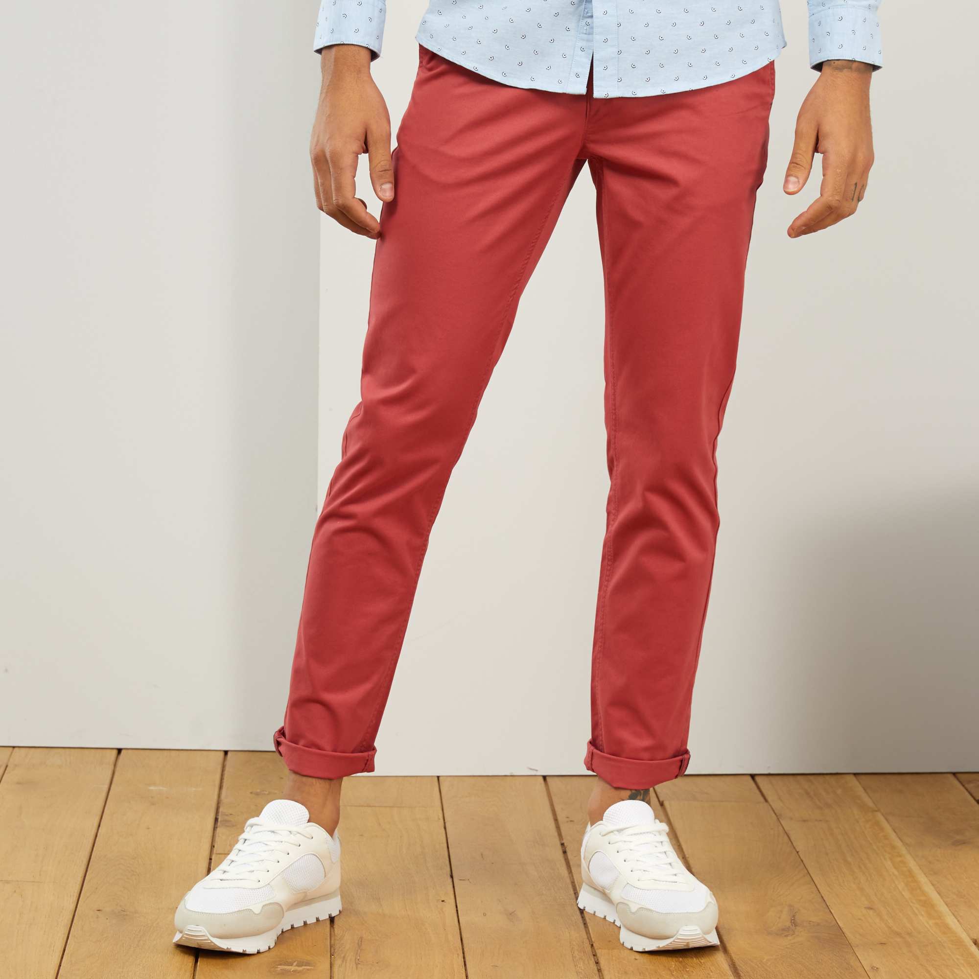 As indispensáveis calças chino numa versão atualizada e reinterpretada num corte slim e numa bela sarja de algodão elástico. Vestir enroladas na parte inferior das pernas para um look casual e chique na moda!