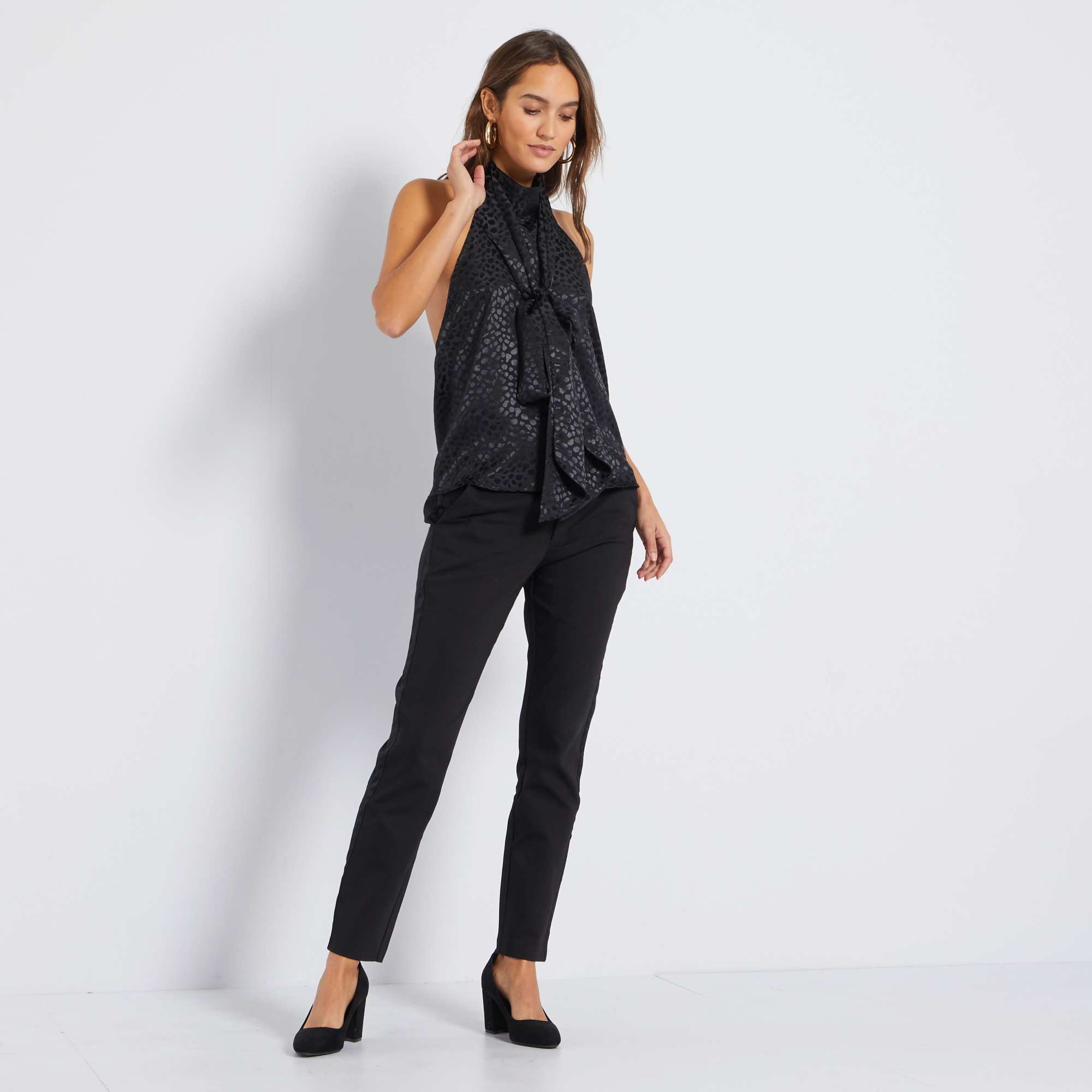 - Calças city com cintura subida