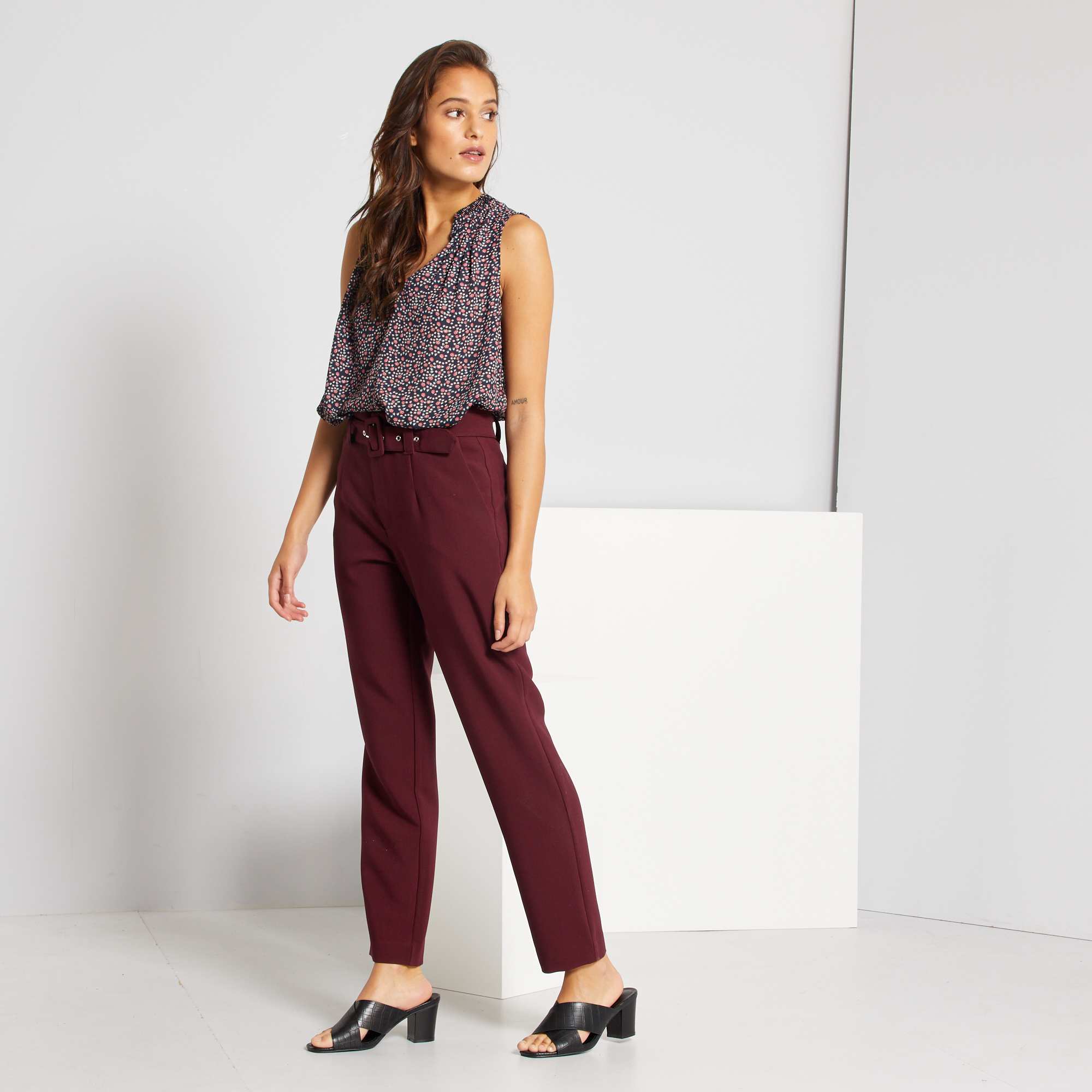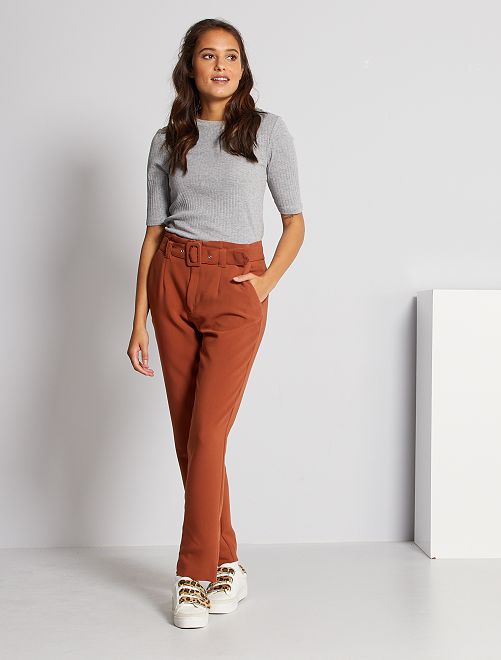 - Calças com cintura subida