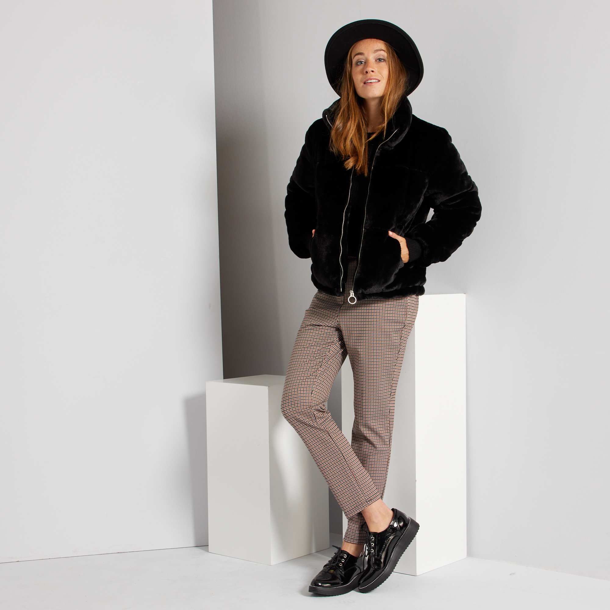 Calças com cintura subida pied de puce
