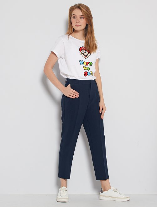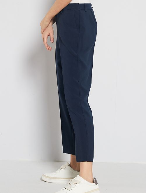 Calças de corte direito 7/8 com parte de trás elástica