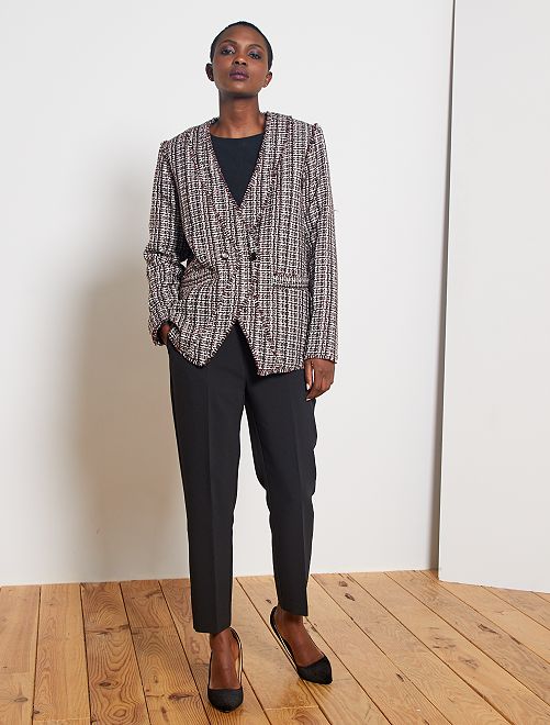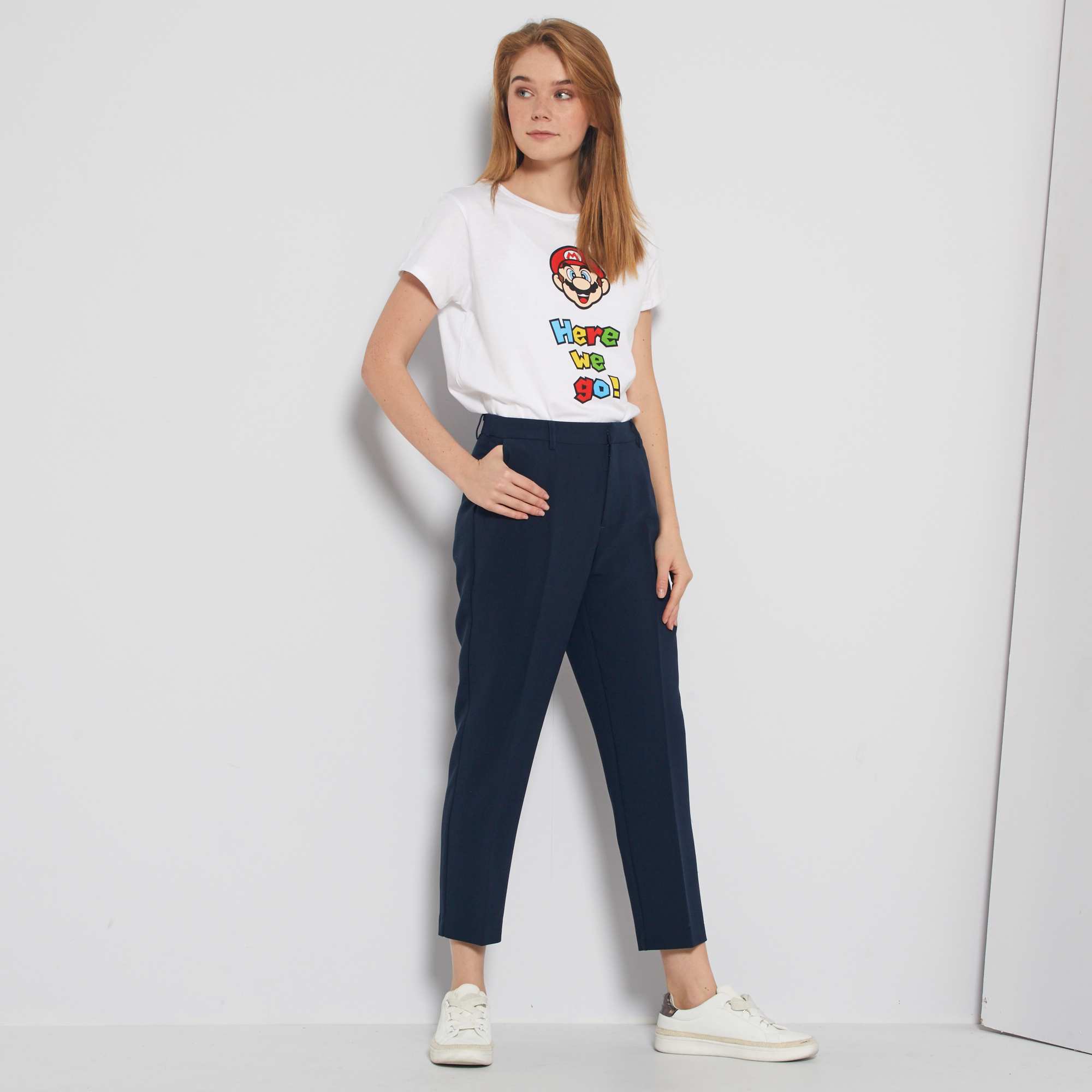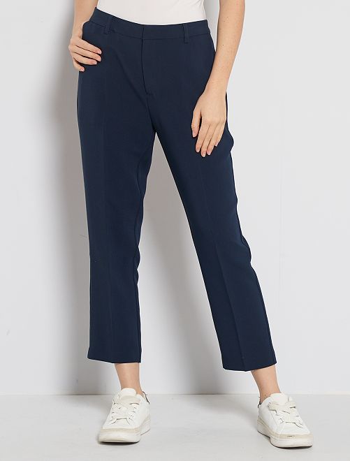 Toda a elegância das calças de corte direito city, com o toque confortável do cinto elástico atrás.