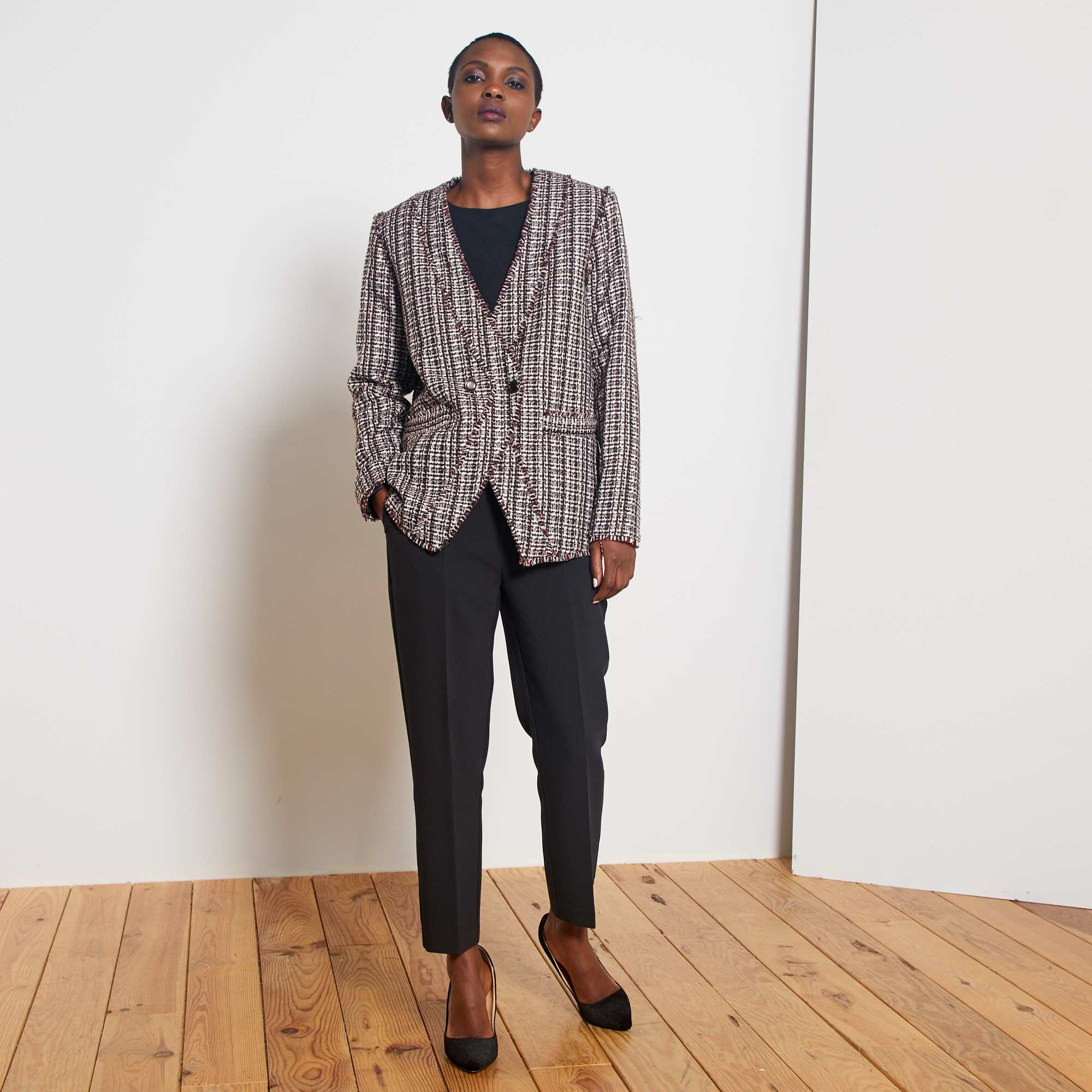 - A nossa modelo veste um tamanho 38 e mede 1,72 m