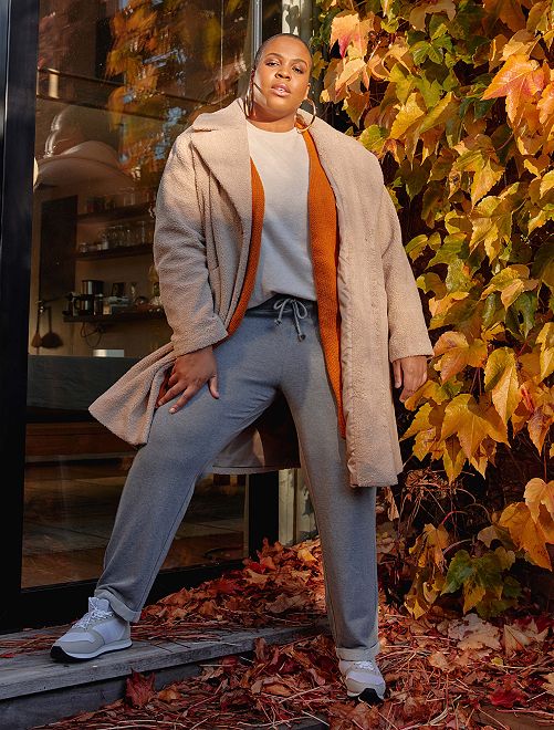 As calças de desporto em moletão leve com pequenos pormenores brilhantes adoráveis.