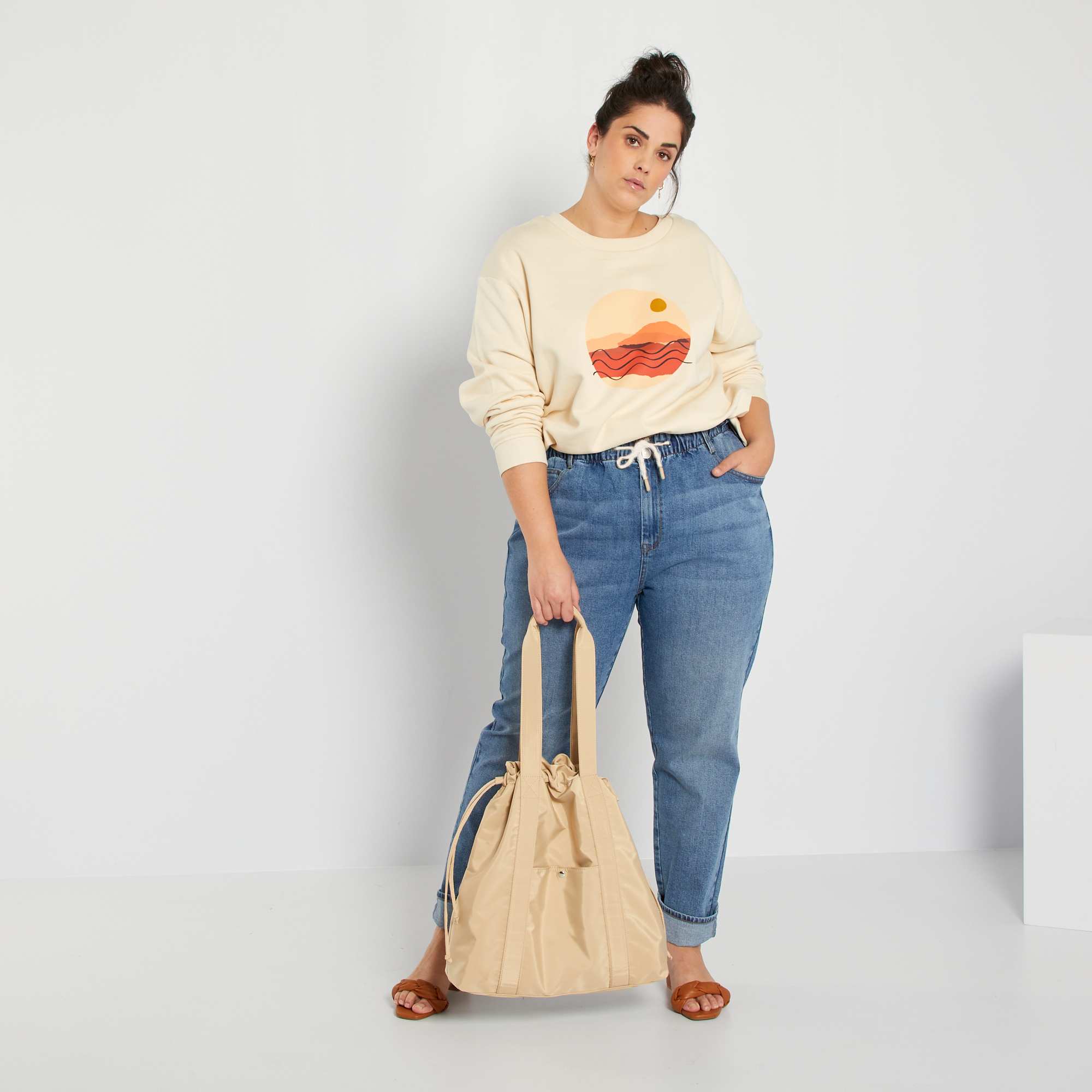 - A nossa modelo veste o tamanho 52 e mede 1,78 m Com esta nova linha, a Kiabi compromete-se com o estilo ao desenvolver a sua gama 'eco-conception' que se destaca por estar no centro dos desafios ambientais têxteis. Este produto beneficiou de uma deslavagem mais económica em termos de água e produtos químicos. Você também? Ao lavar a roupa a 30 °C ou a frio, também irá acompanhar-nos nesta iniciativa!