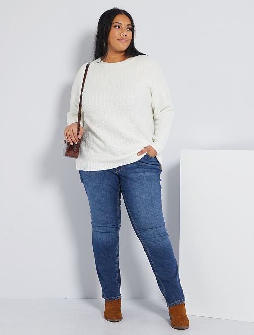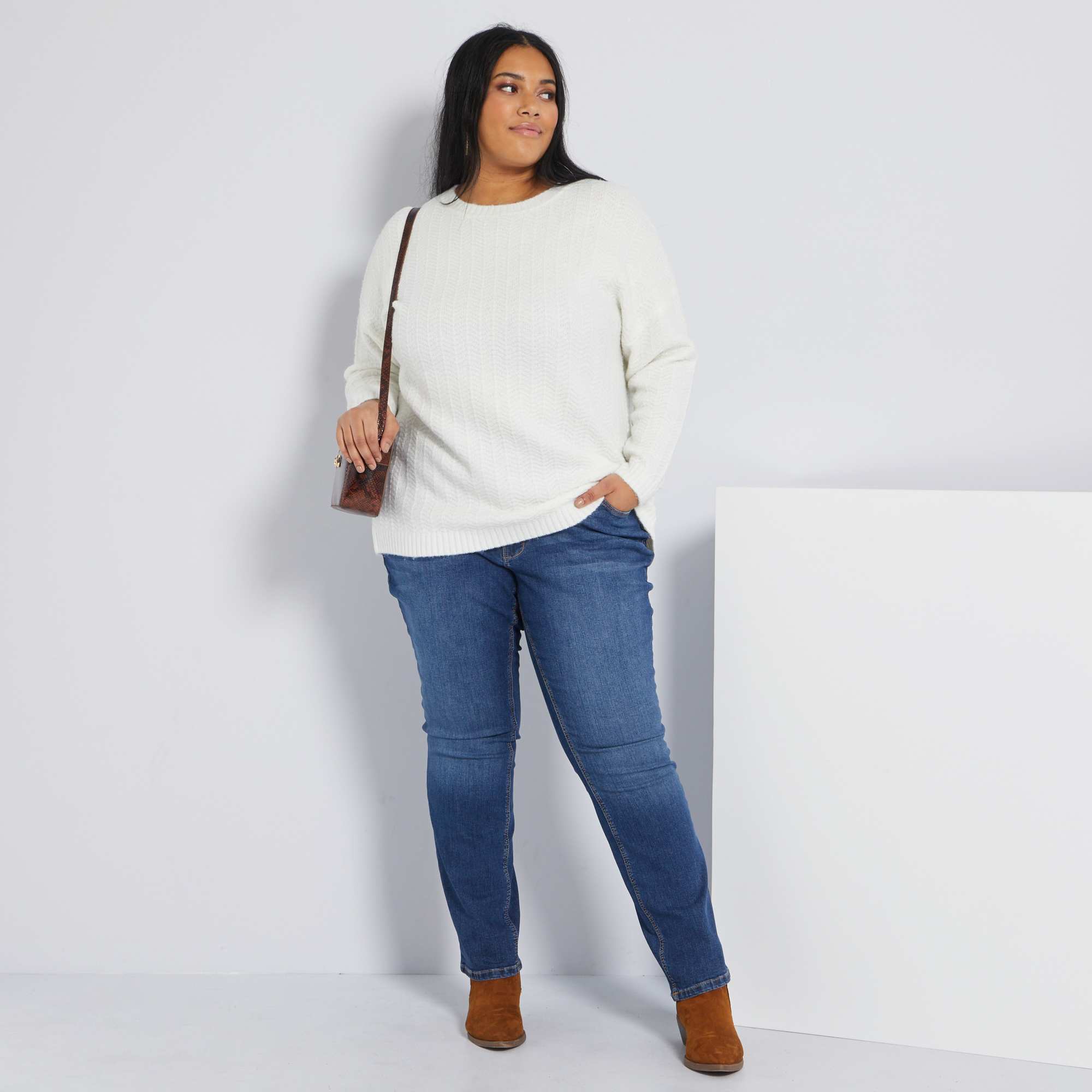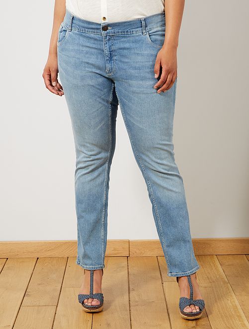 Umas calças de ganga essenciais no guarda-roupa, corte direito ligeiramente justo e elástico.