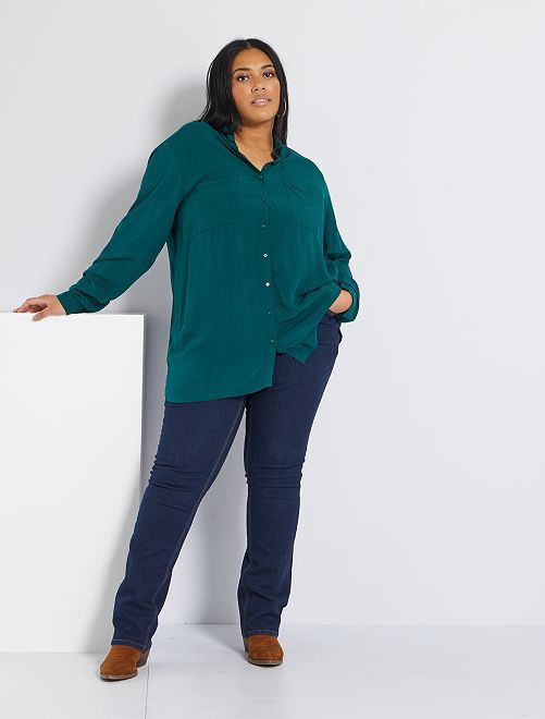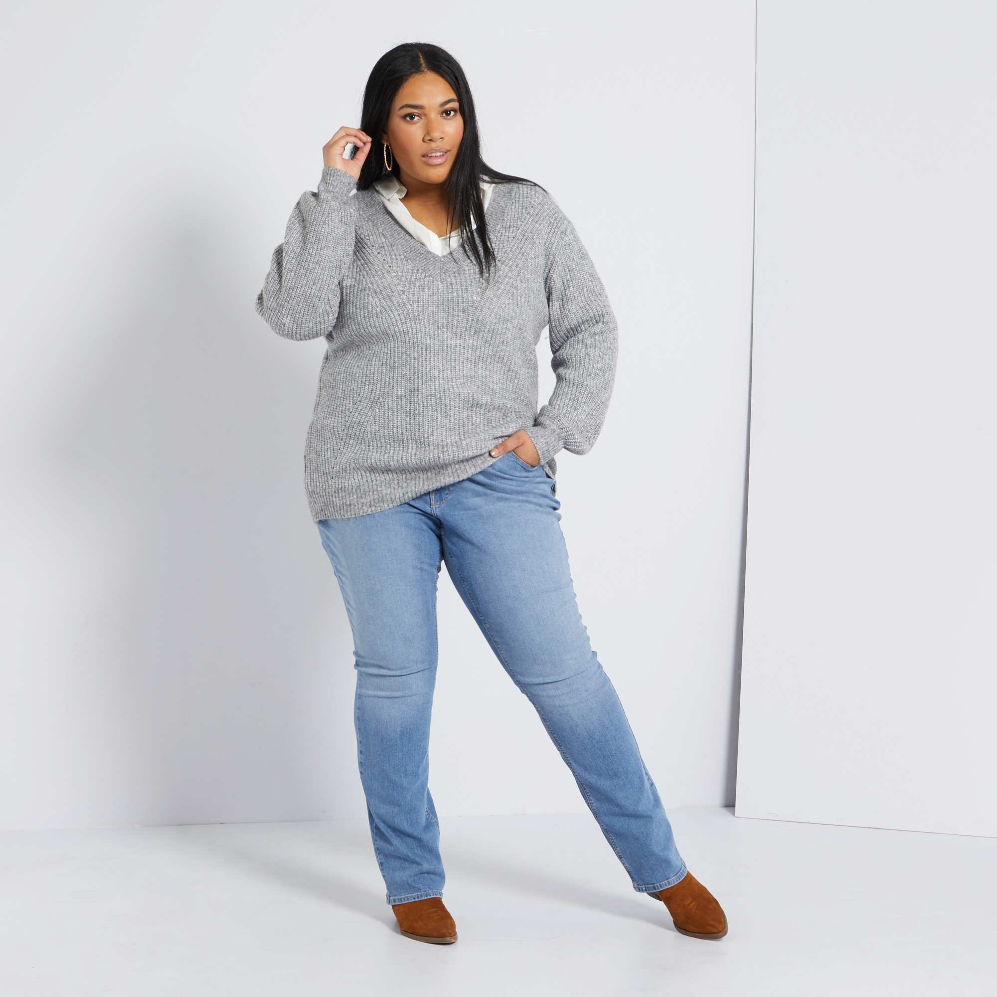 Umas calças de ganga essenciais no guarda-roupa, corte direito ligeiramente justo e elástico.