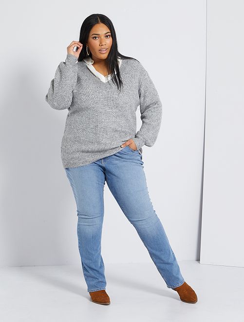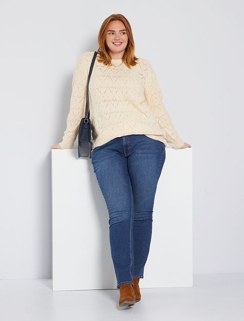 Exclu WebCalças de ganga regulares de ganga elástica comprimento 82 cm