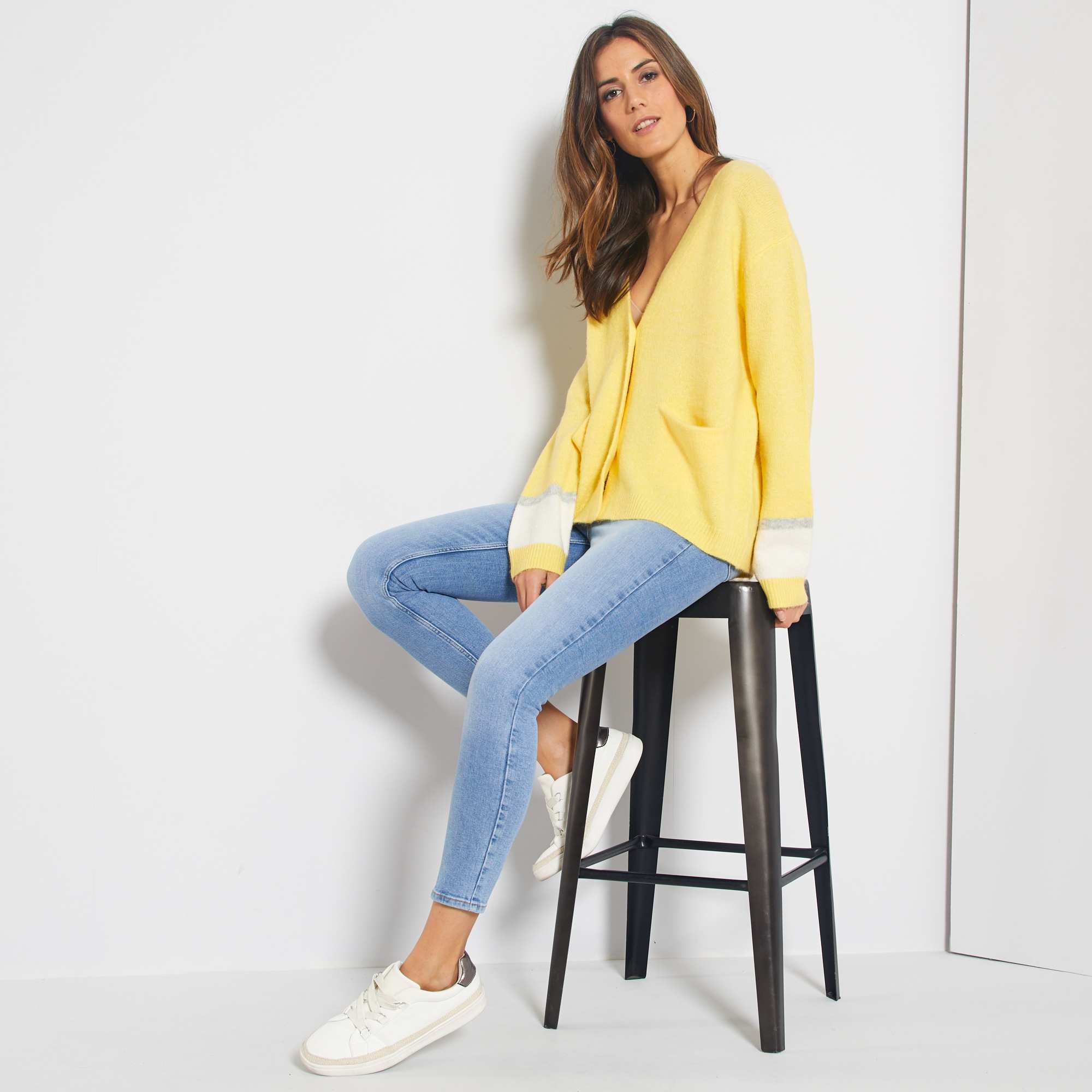 Exclu WebCalças de ganga skinny com cintura subida e comprimento 28