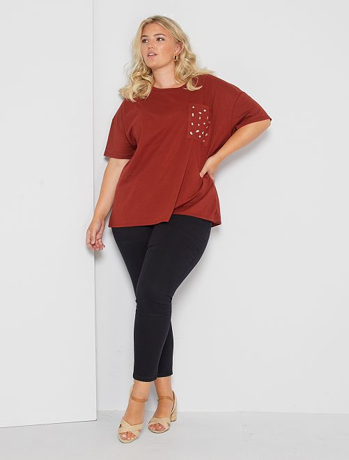 - Largura da parte inferior da perna: 14 cm. A nossa modelo veste um tamanho 46 e mede 1,75 m.