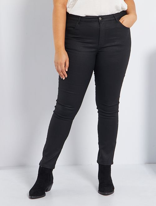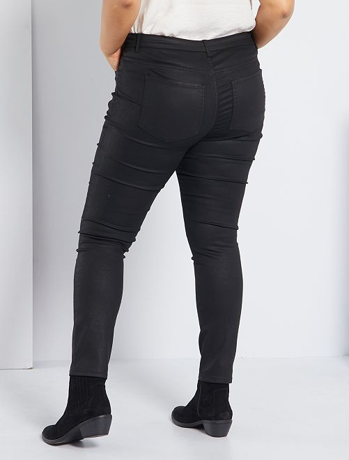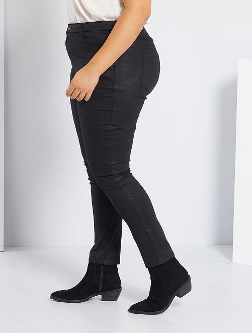 Relativamente às calças em pele sintética, aqui estão as nossas skinny com efeito revestido que combinamos com uma blusa com flores para um look rock!