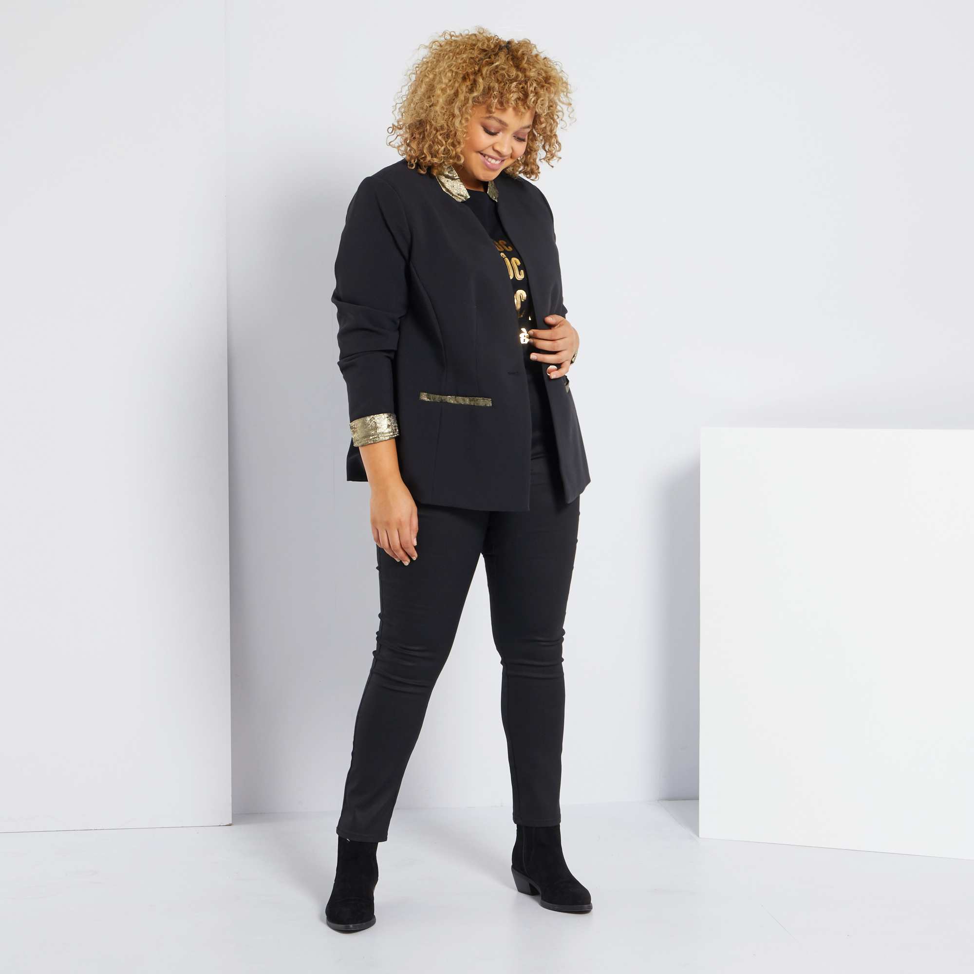 - A nossa modelo veste o tamanho 46 e mede 1,75 m