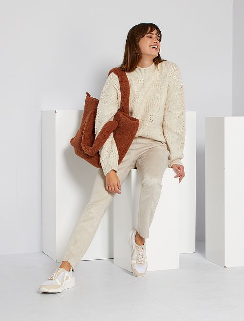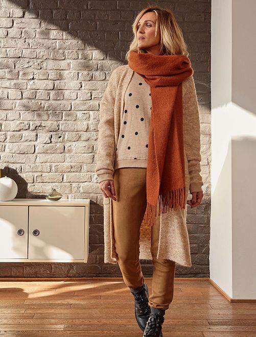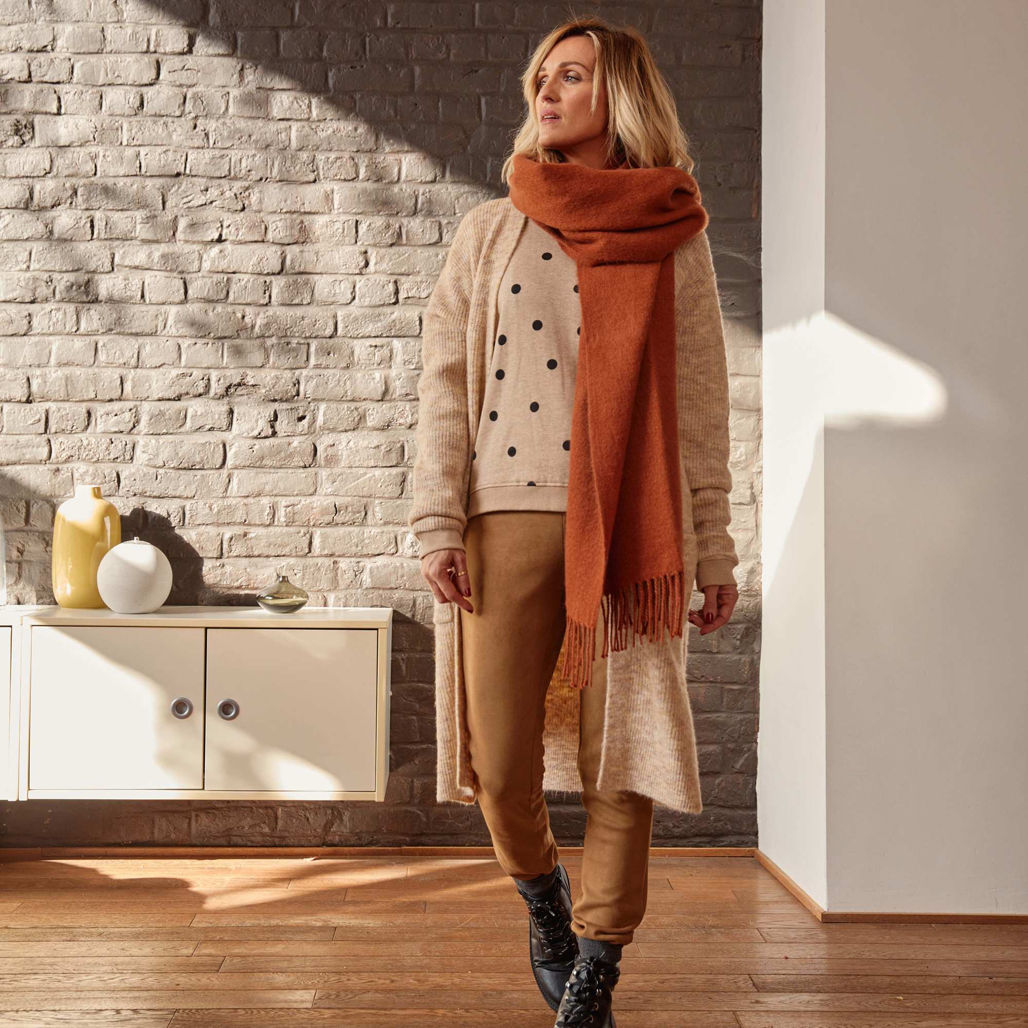 Umas calças como uma segunda pele e um toque de pele de pêssego.