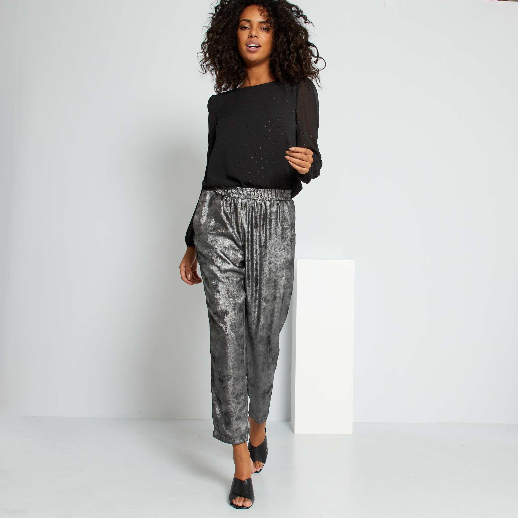 - Calças fluidas acetinadas
