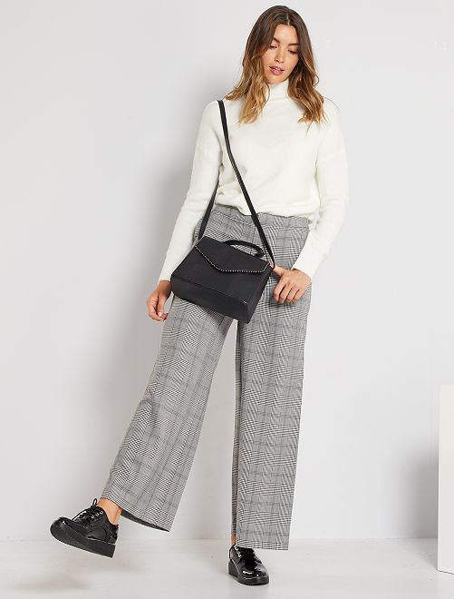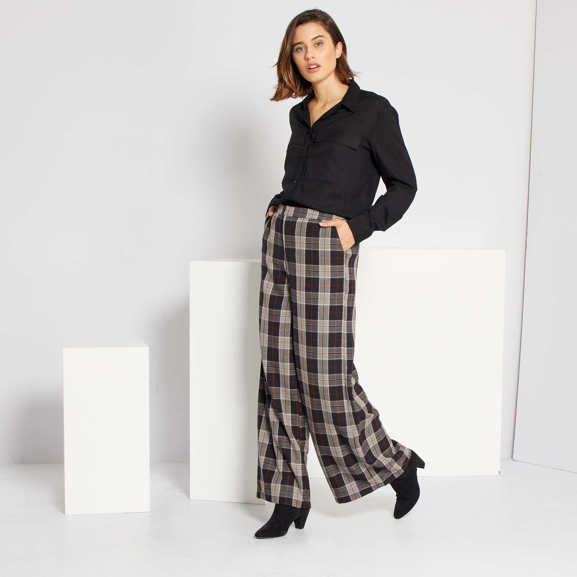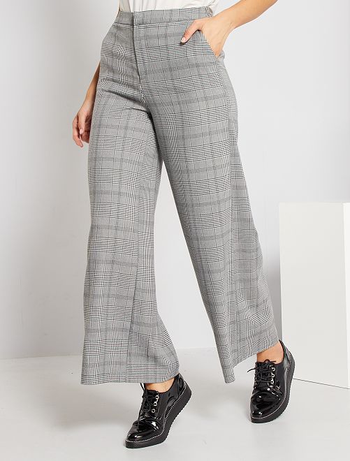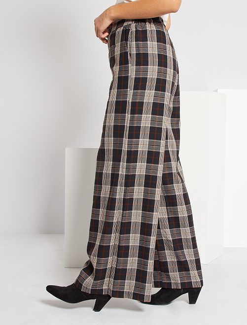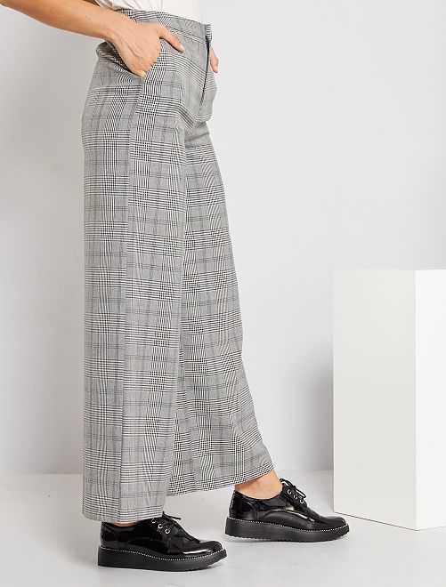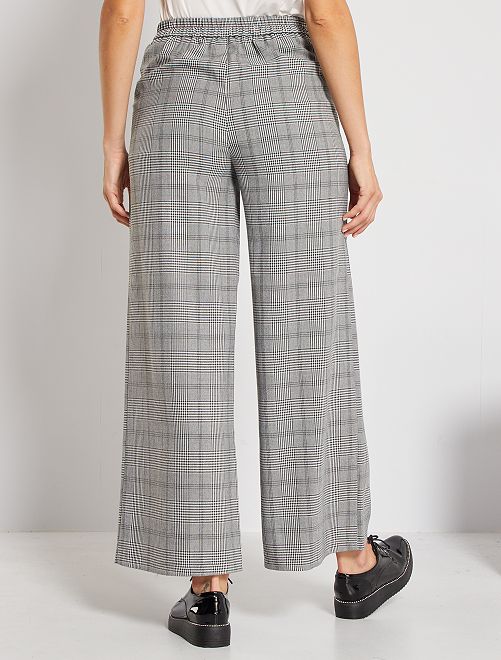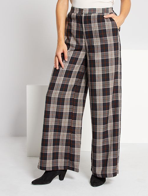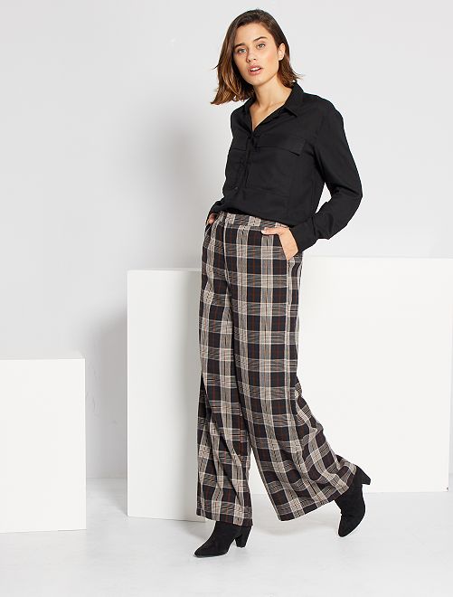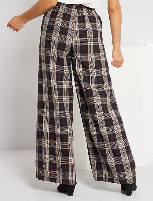 Um corte largo e um estampado aos quadrados nestas calças elegantes. Para usar com saltos altos para um visual elegante ou com uns ténis para um visual mais informal!