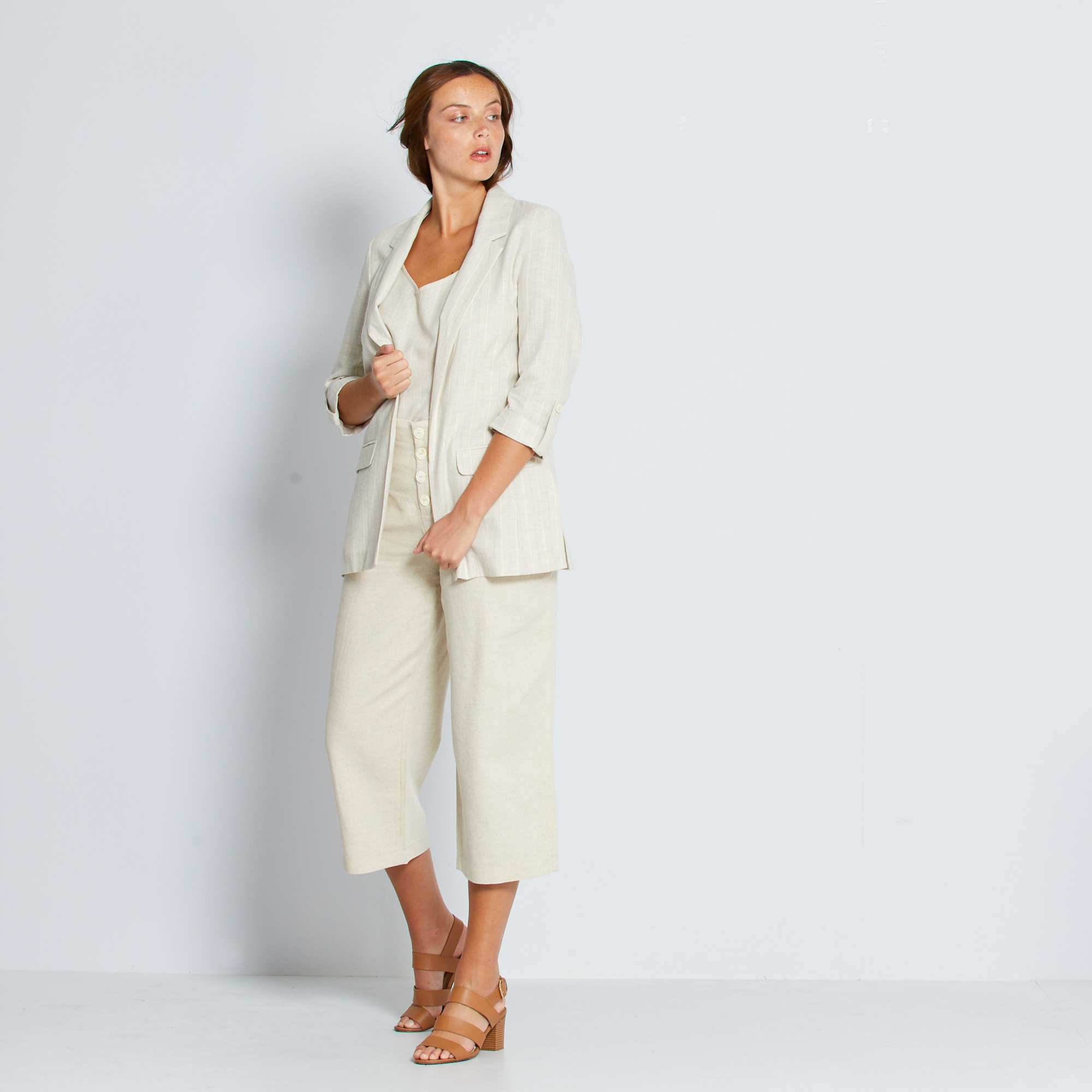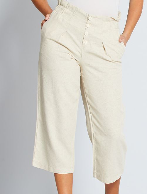Calças largas em algodão e linho de conceção ecológica
