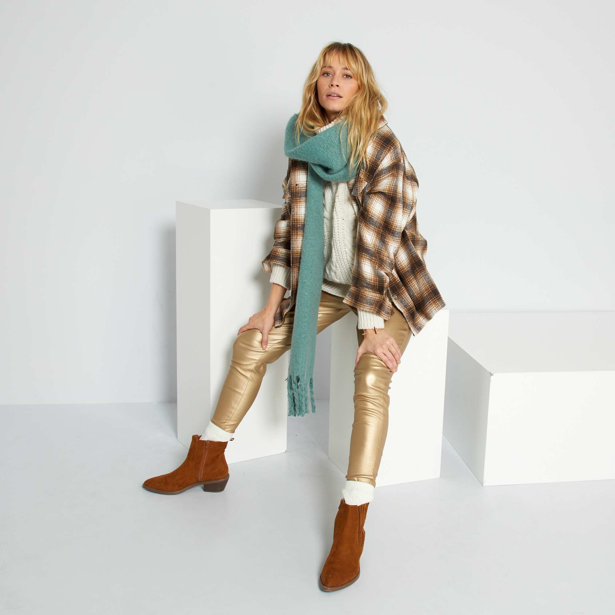 - Calças douradas