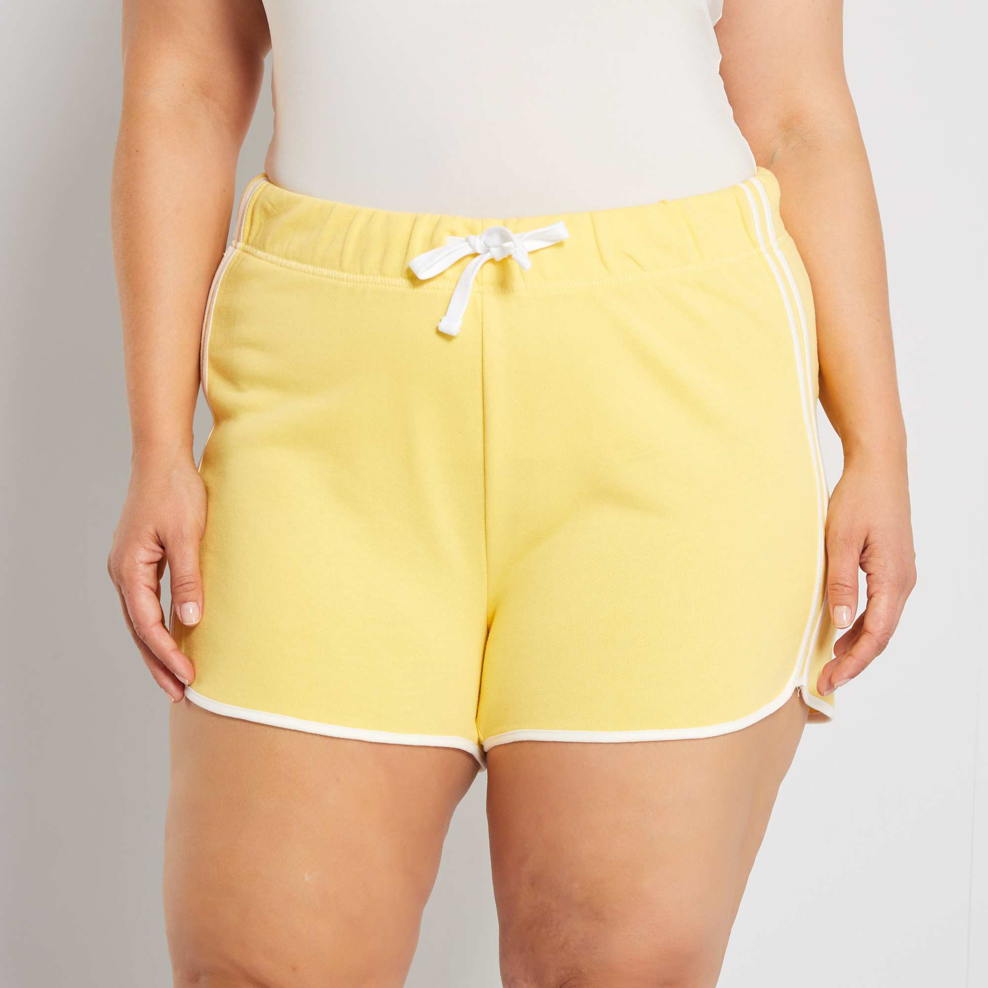 - Cintura elástica com cordões contrastantes