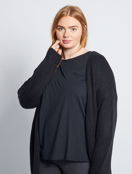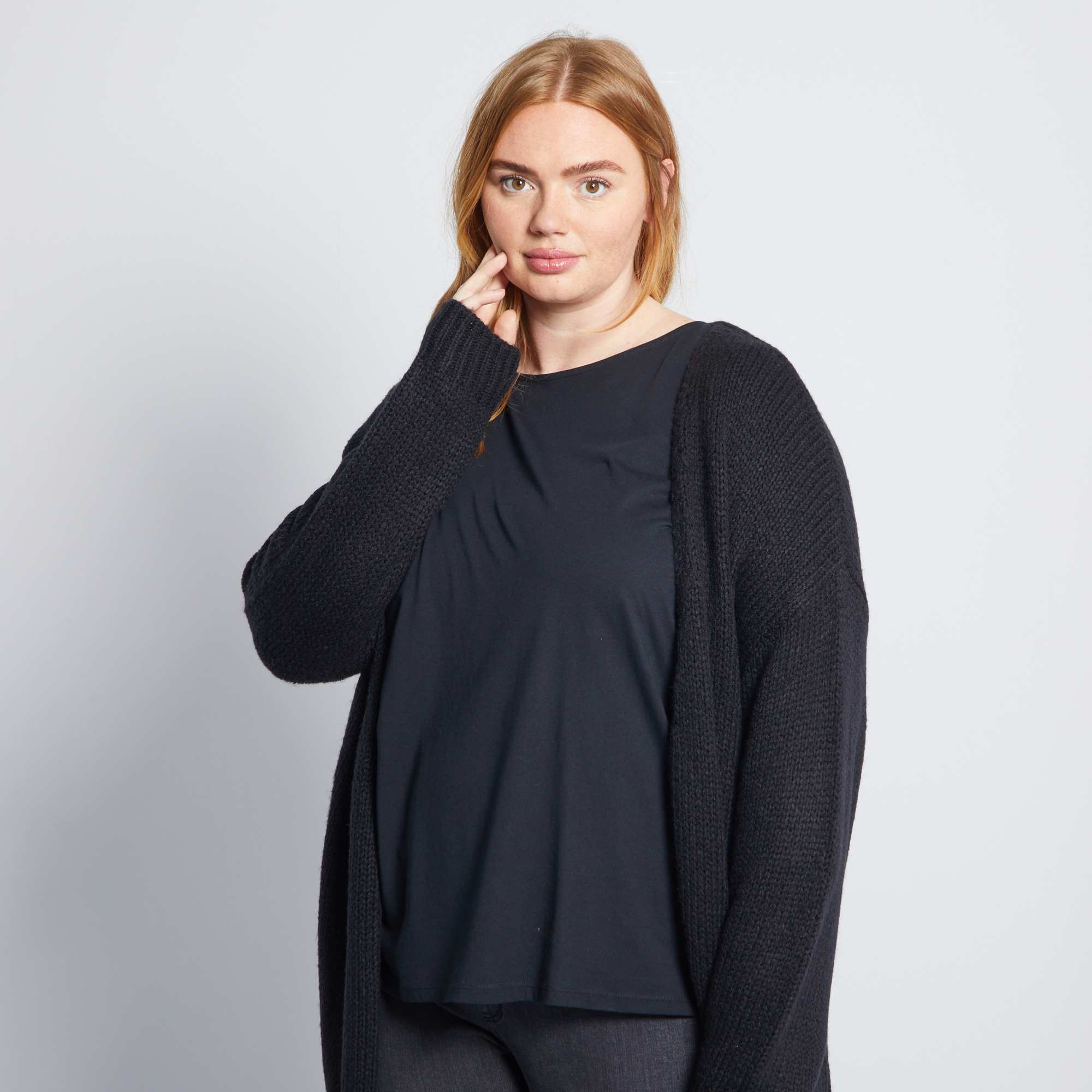 Um casaco em malha grossa e suave, ideal para aquecer as suas toilettes, ou como casaco de meia-estação.
