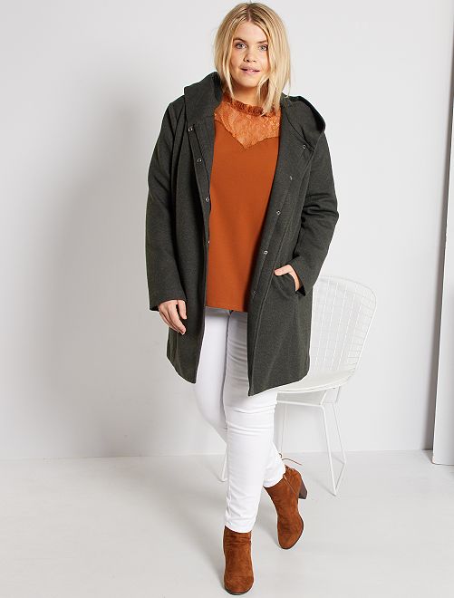 Um casaco em tecido que vestimos diariamente! O capuz bem prático e o corte puro são perfeitos para a estação!