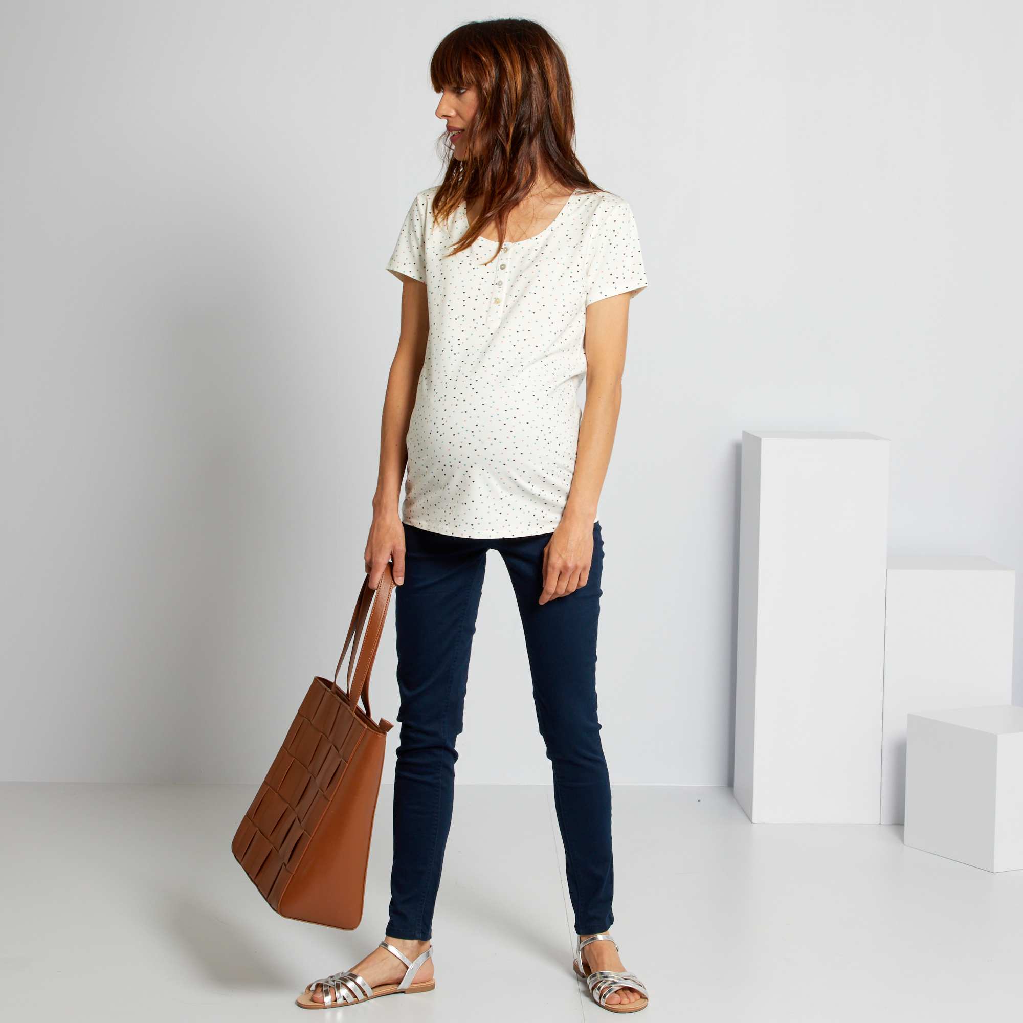 O prazer do estilo e o conforto da elasticidade nestes jeggings pré-mamã! Uma peça essencial para o seu visual, que vai poder usar durante os nove meses.