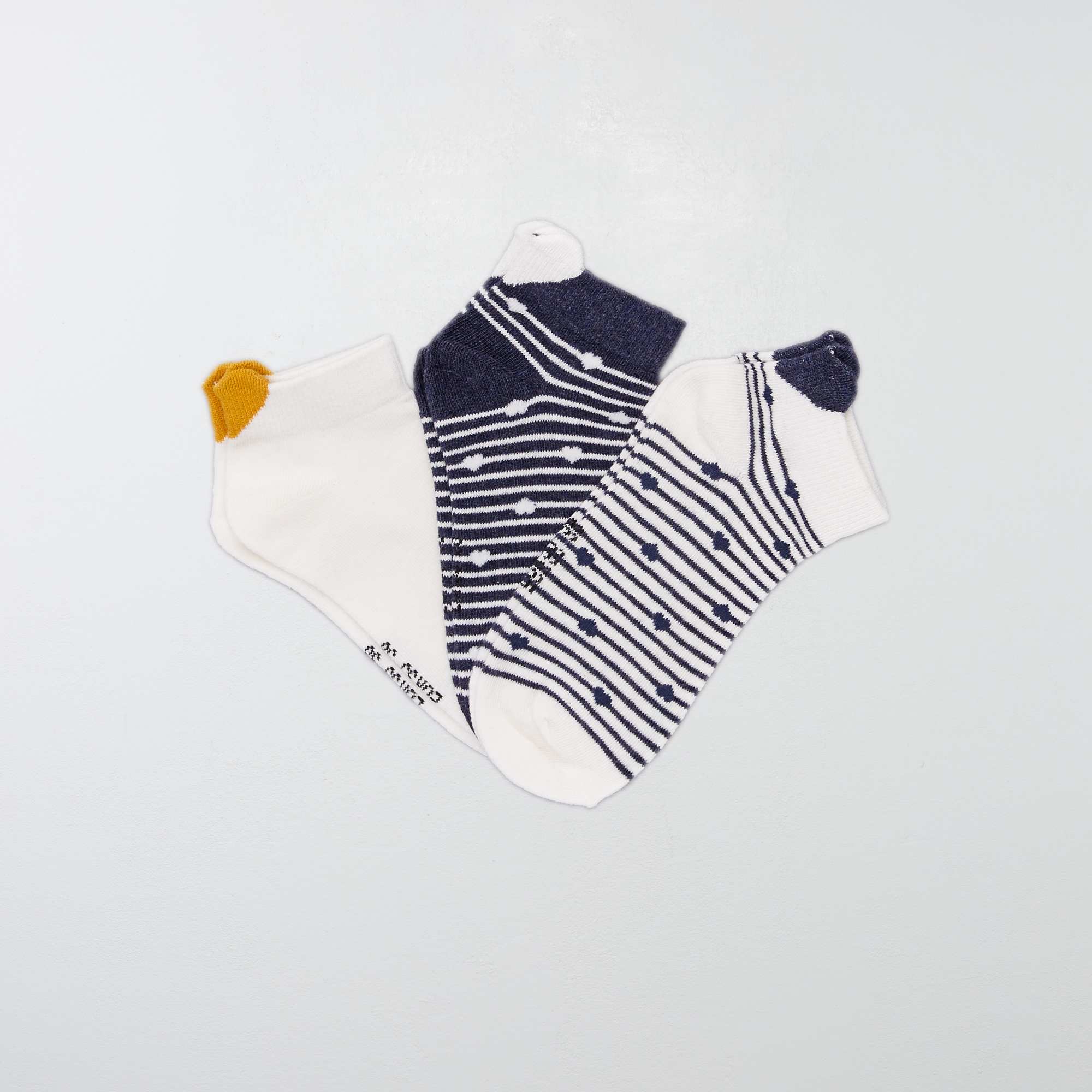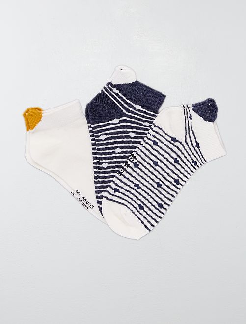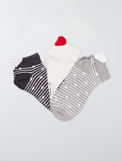 Lote de 3 pares de meias curtas 'riscas e coração'