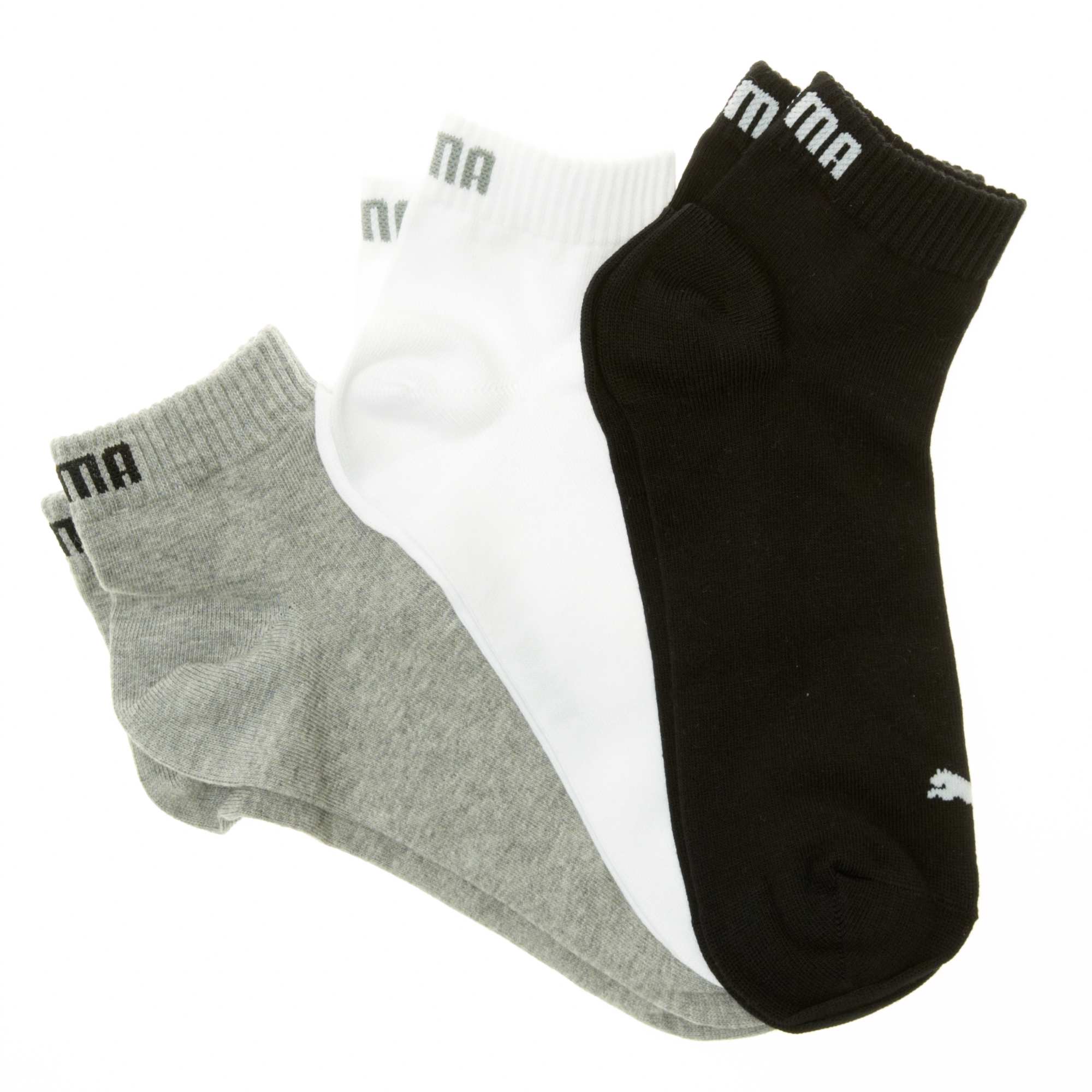 O ideal para fazer desporto, o lote de 3 pares de meias 'Puma' com cano curto! - Estampado no cano e por cima do pé - Algodão elástico suave - Costura plana nos dedos.