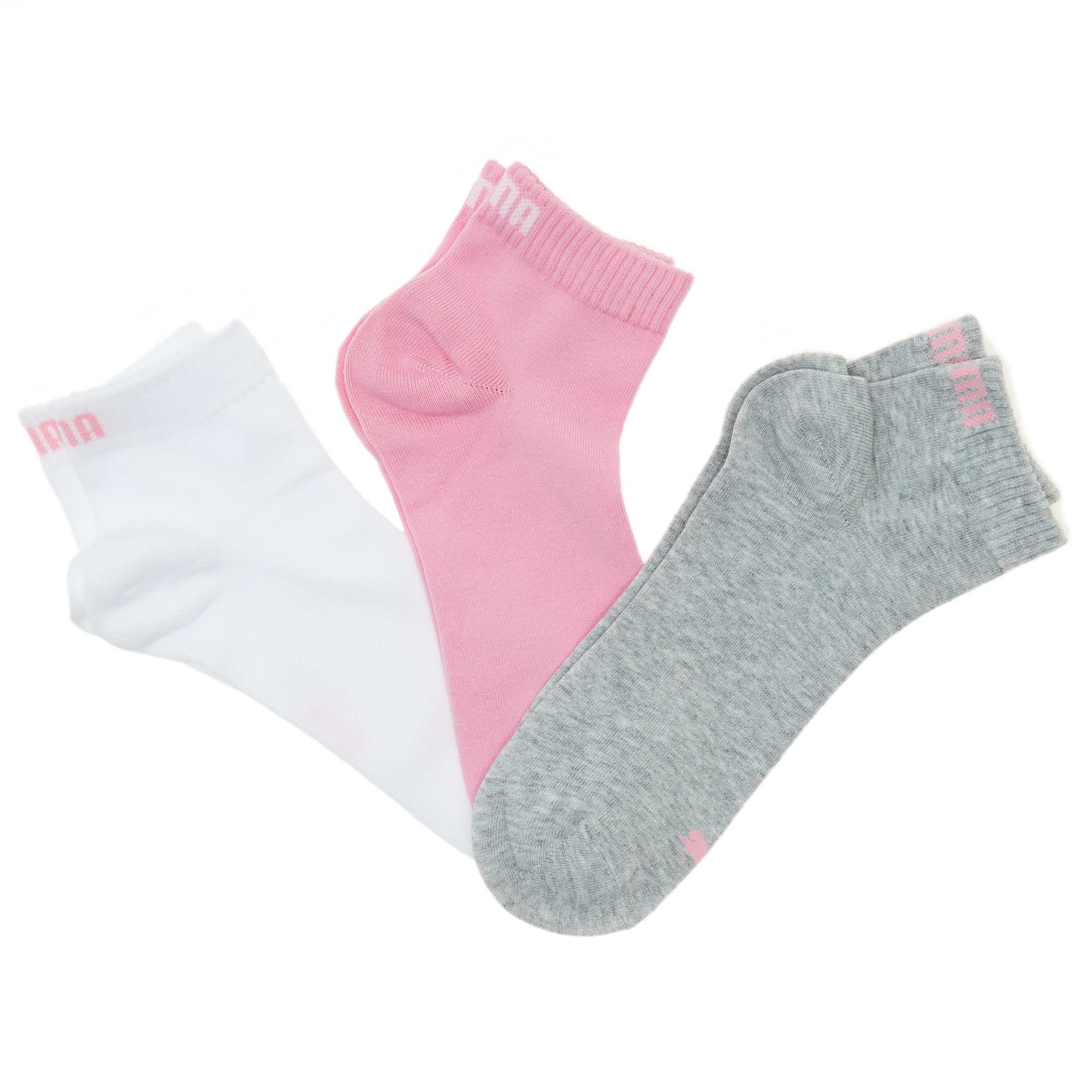 O ideal para fazer desporto, o lote de 3 pares de meias 'Puma' com cano curto! - Estampado no cano e por cima do pé - Algodão elástico suave - Costura plana nos dedos.