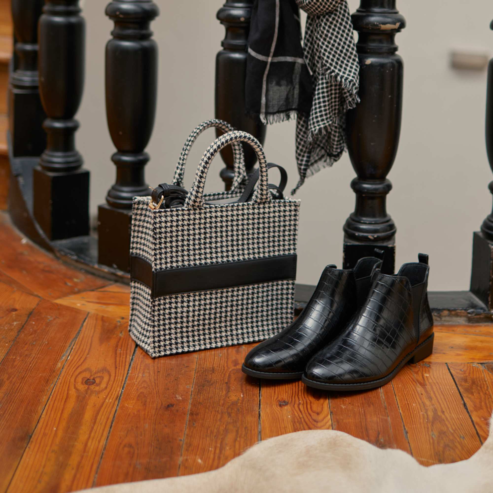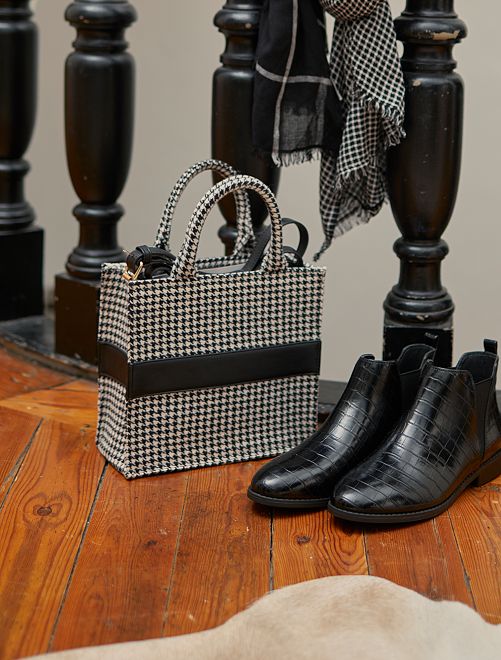 Uma bonita mala em tecido 'pied-de-poule' para completar o seu visual com um toque chique!