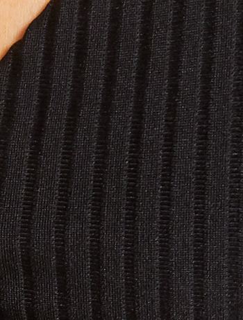 A peça básica preta para adicionar aos seus fatos de banho de verão. Adoramos o estilo costura chique da sua malha em relevo e o botão de fantasia no meio do decote.