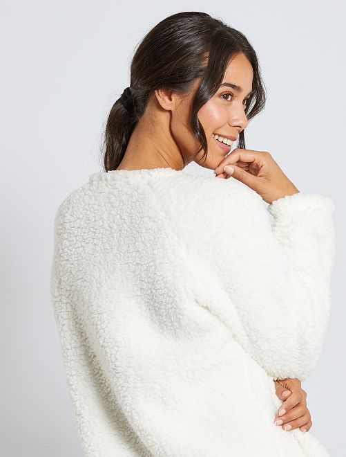 - Parte de cima em malha de peluche tipo sherpa