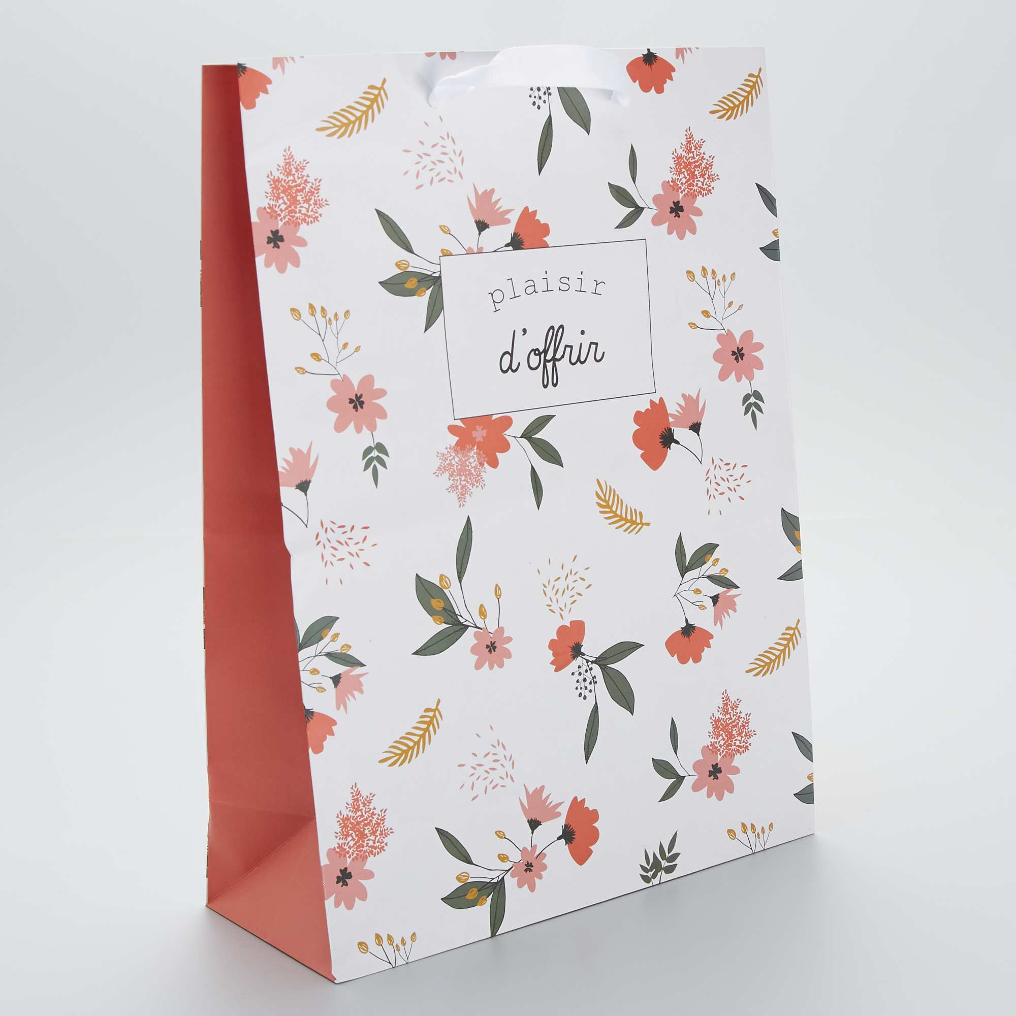 Saco de presente em papel reciclado                                         Estampado de Flores