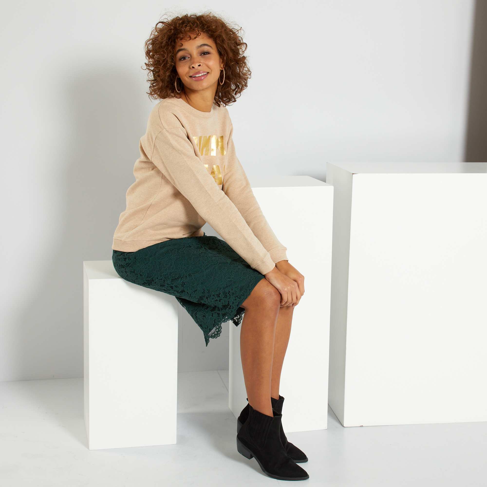 Saia pelo joelho em renda