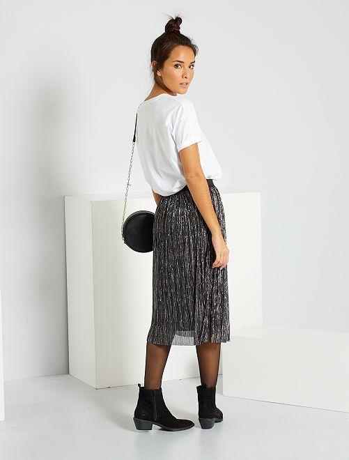 A saia plissada está no centro da tendência. Adoramo-la em versão brillante para as festas!