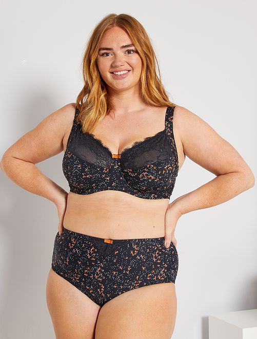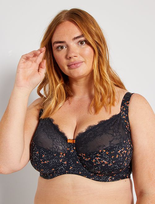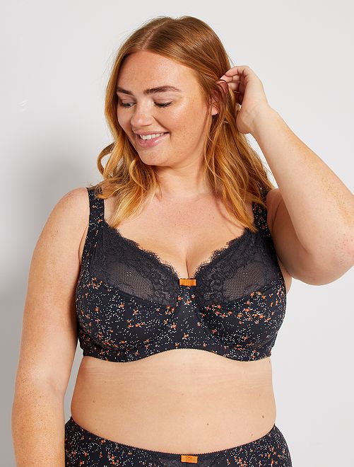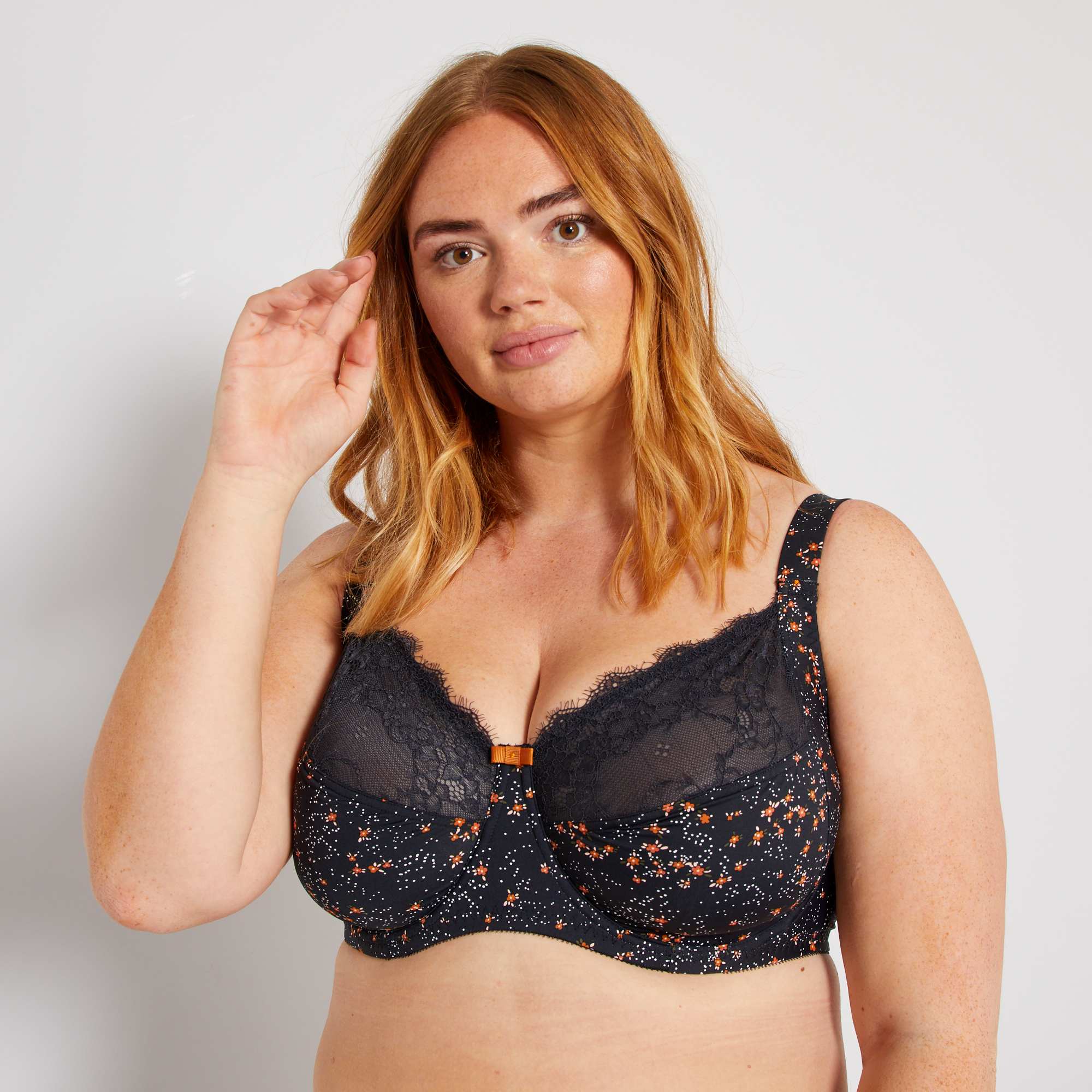 Um soutien que envolve os peitos generosos com a sua renda com um excelente conforto.