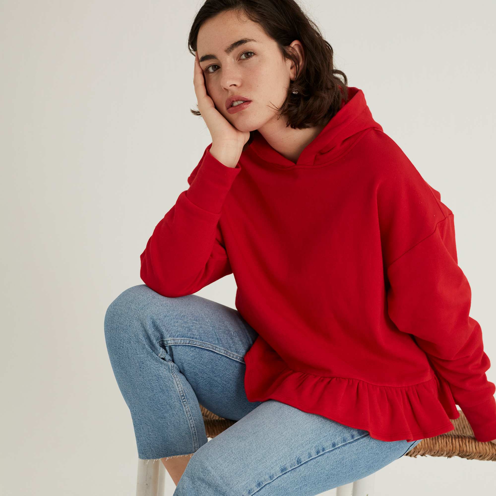 Uma sweatshirt lisa com um toque de originalidade graças ao folho na base!