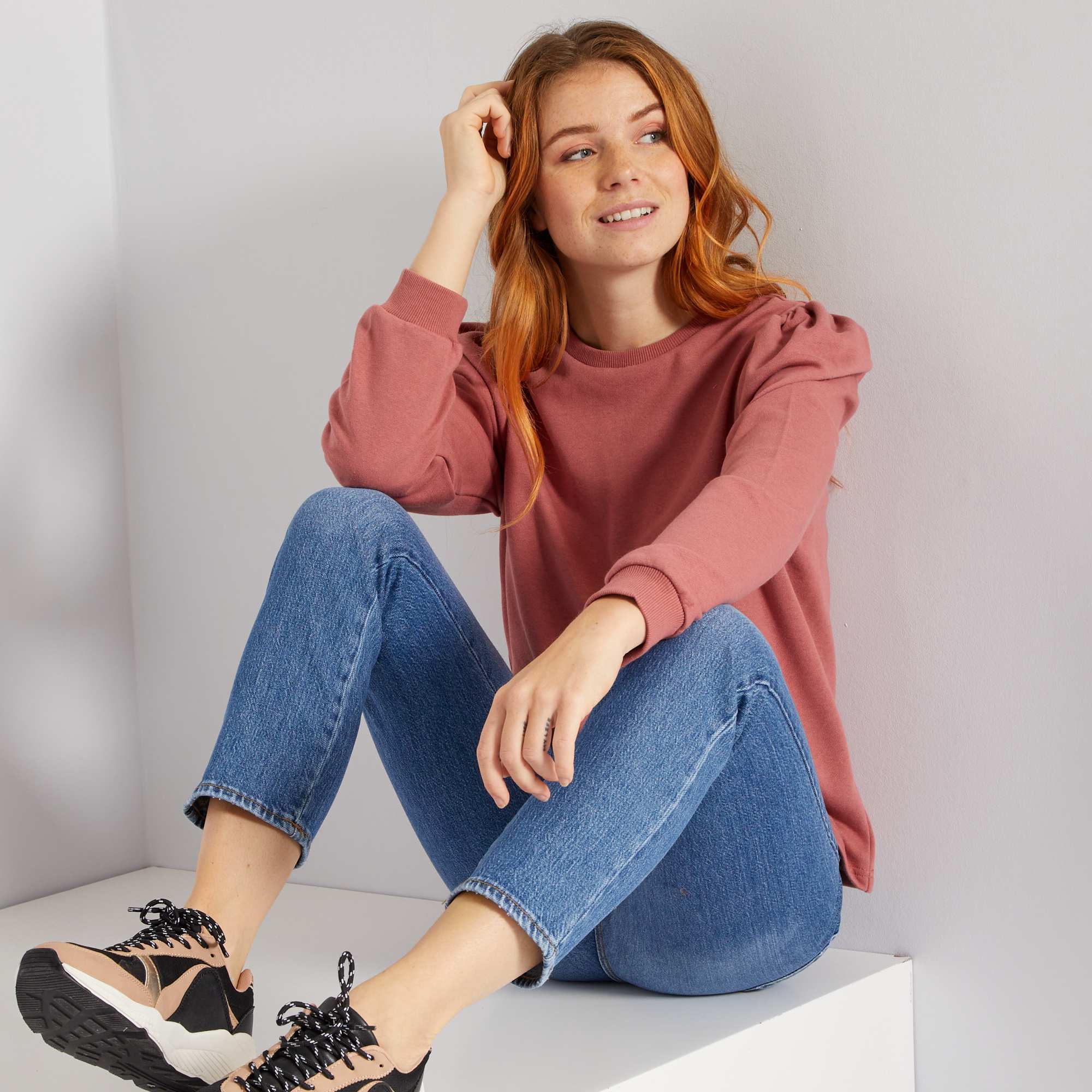 Sweatshirt leve com mangas de balão