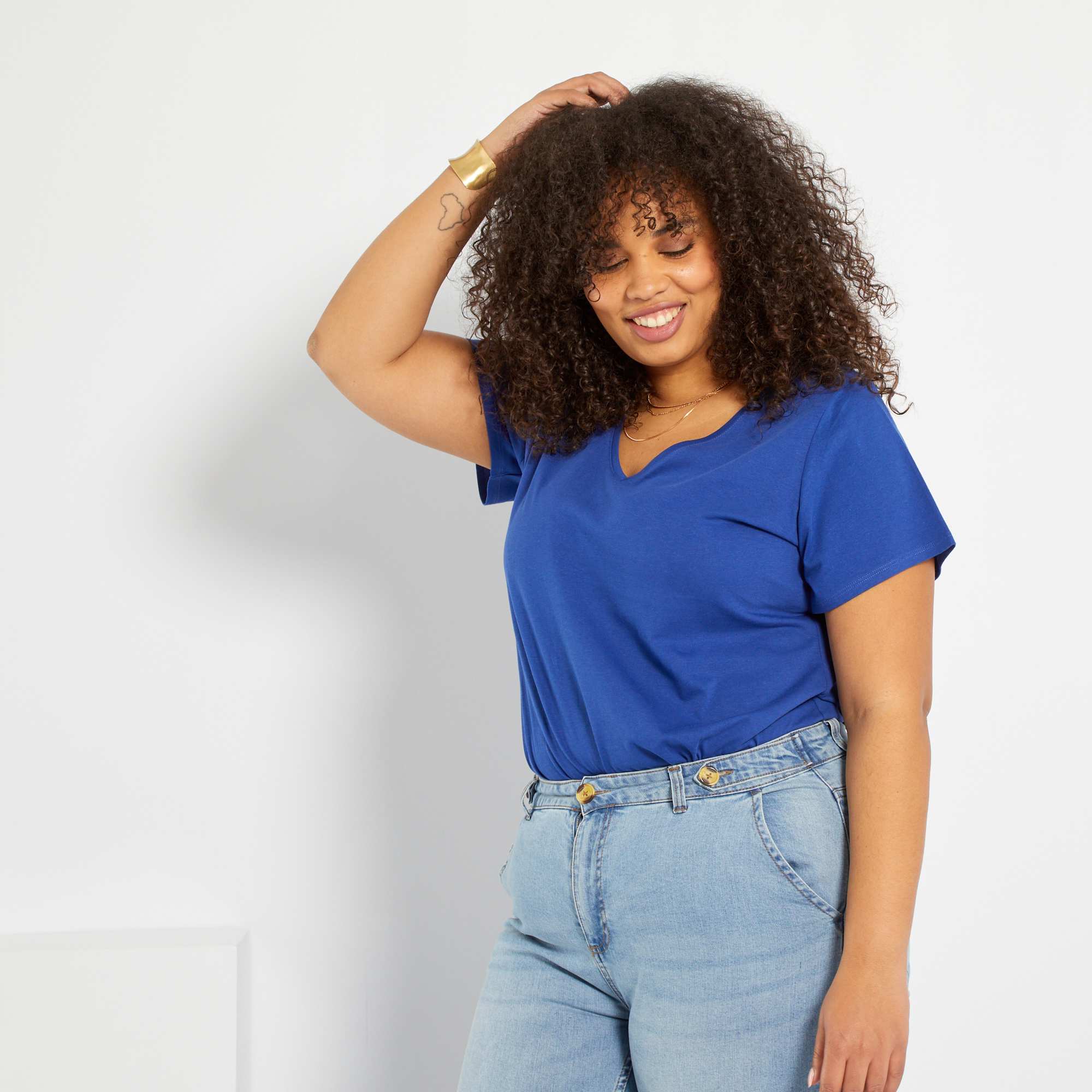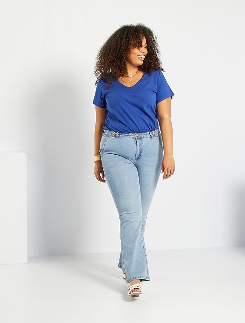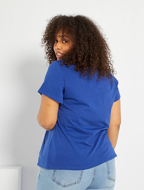 T-shirt lisa com gola em V                                         Azul Oceano