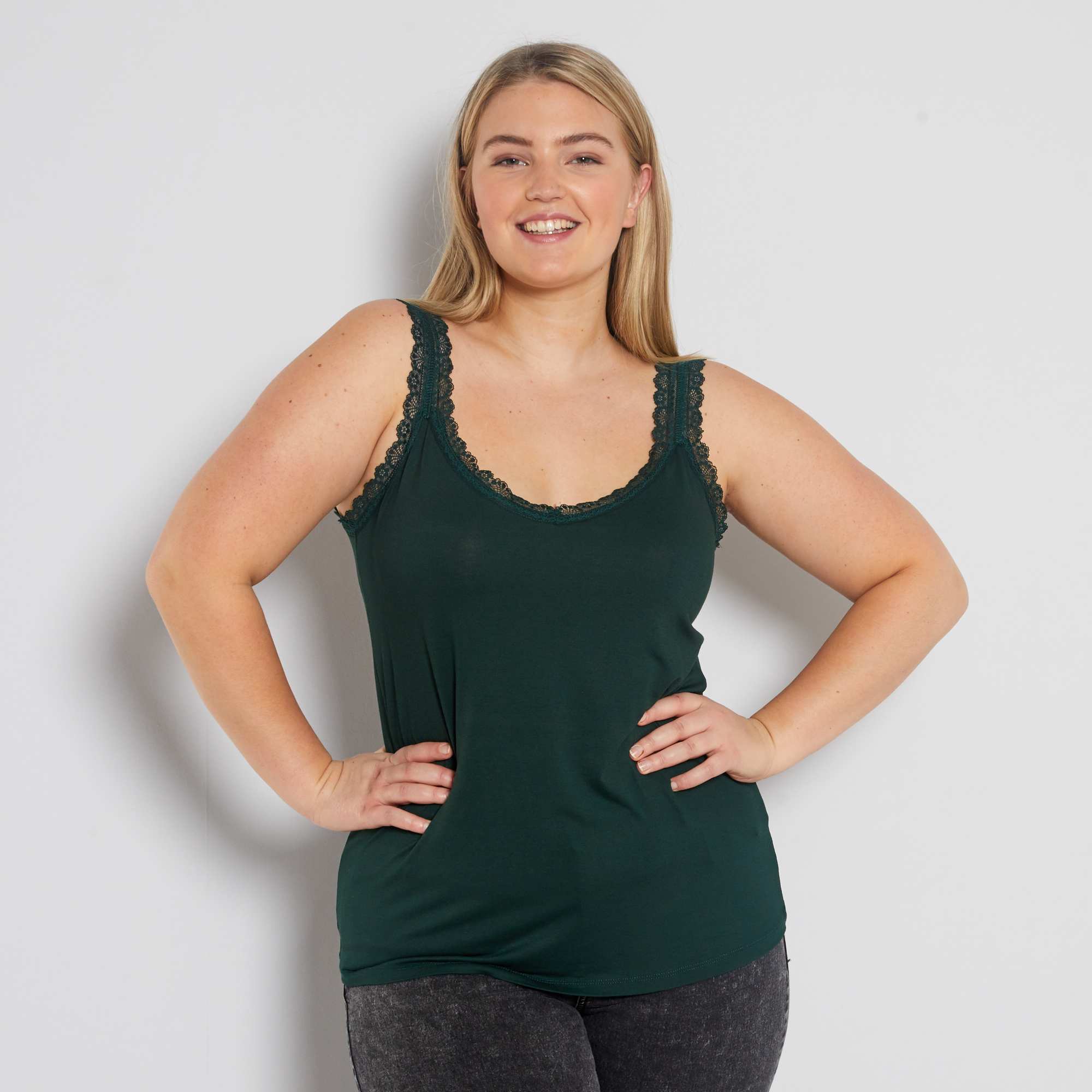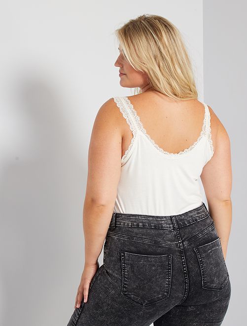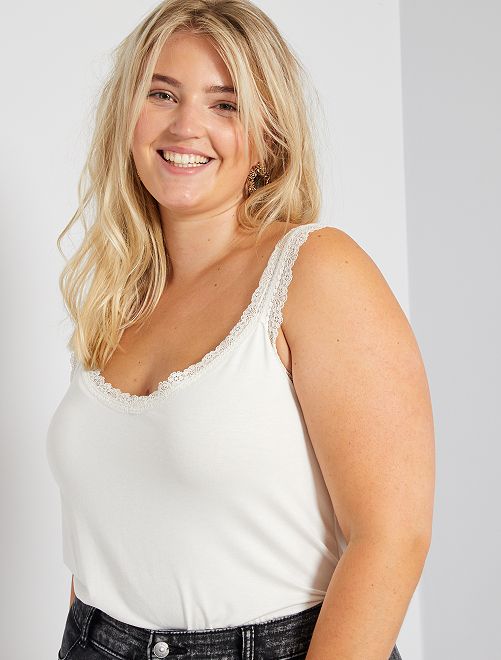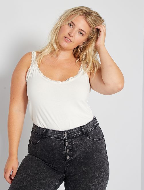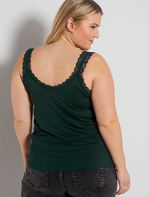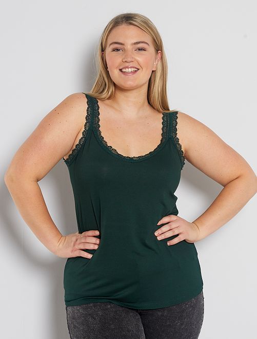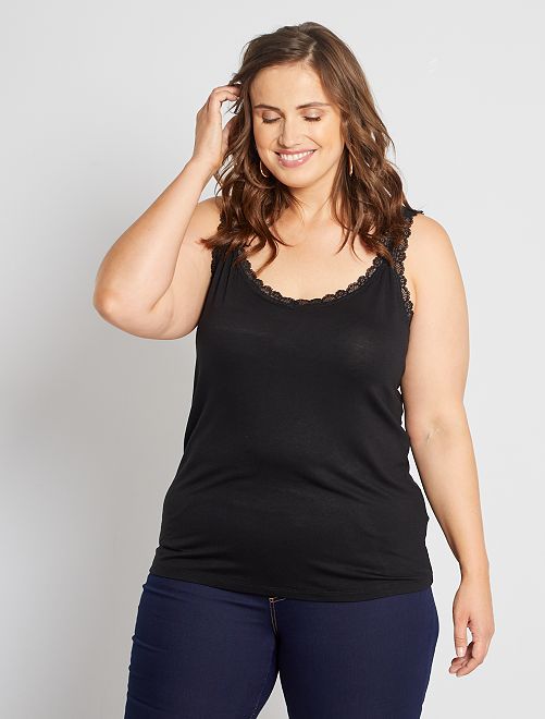 Top de alças em viscose elástica com renda