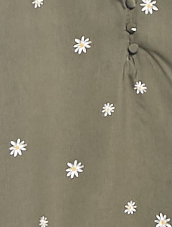 - Decote ornamentado com renda e botões