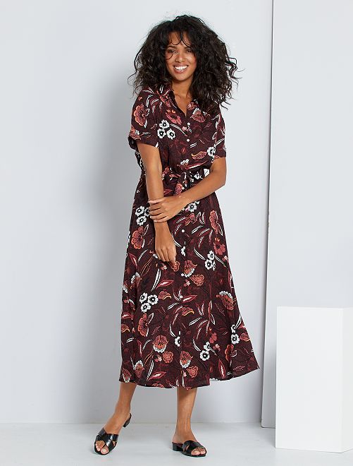 Vestido-camisa comprido estampado