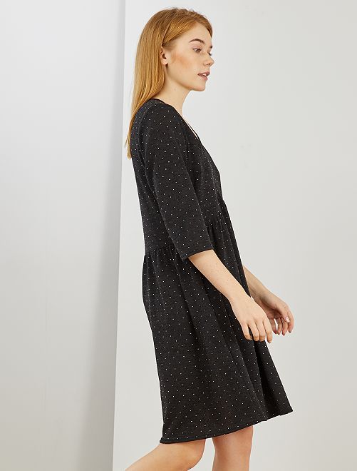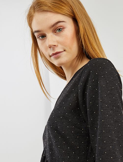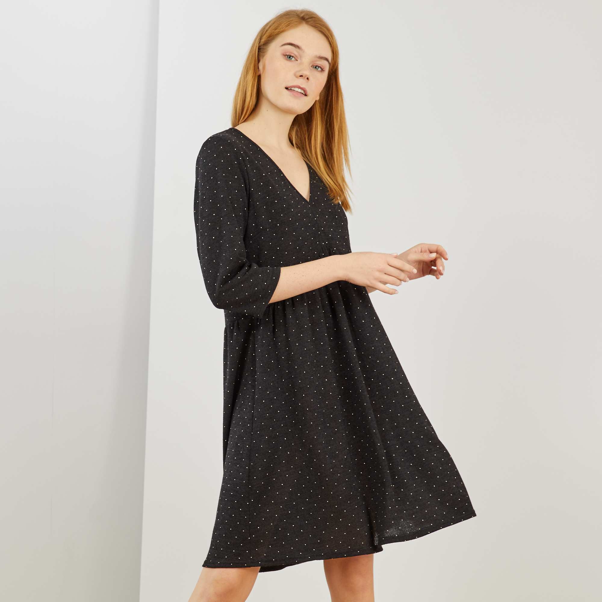 Um vestido com ouropel perfeito para as festas! A sua malha leve e as tachas douradas combinarão bem com um bonito par de botas!