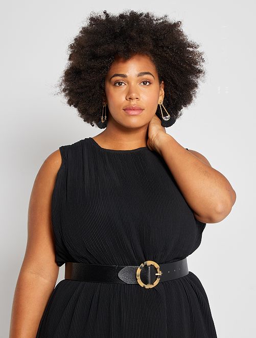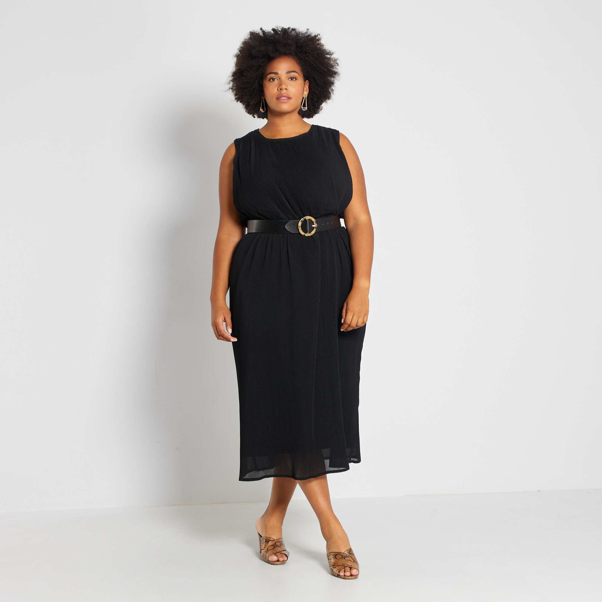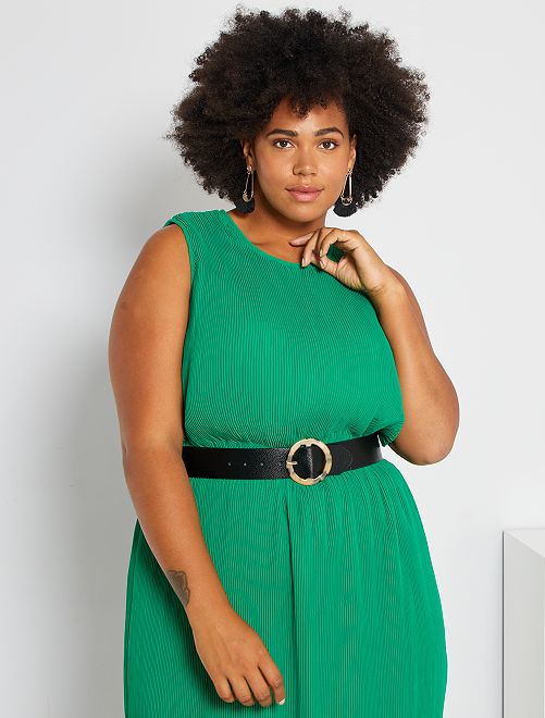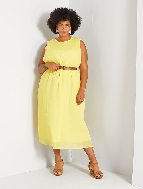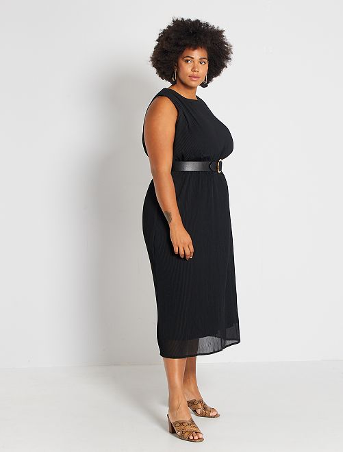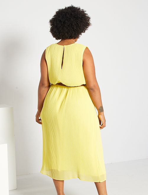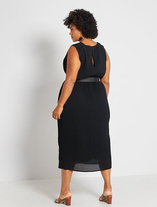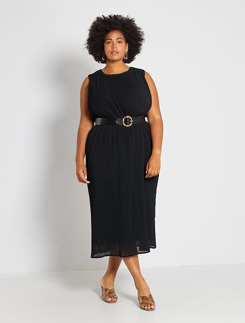 Elegância e tendência para este vestido comprido plissado sem mangas. É totalmente forrado e o tecido estruturado proporciona-lhe uma bonita toilette.