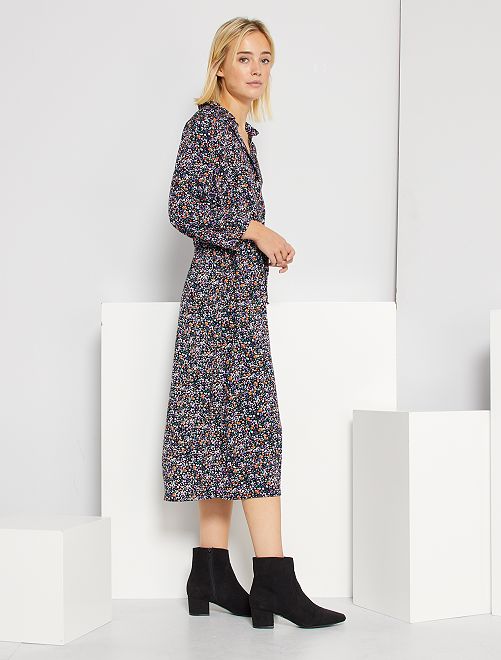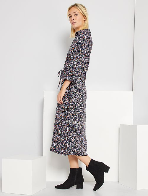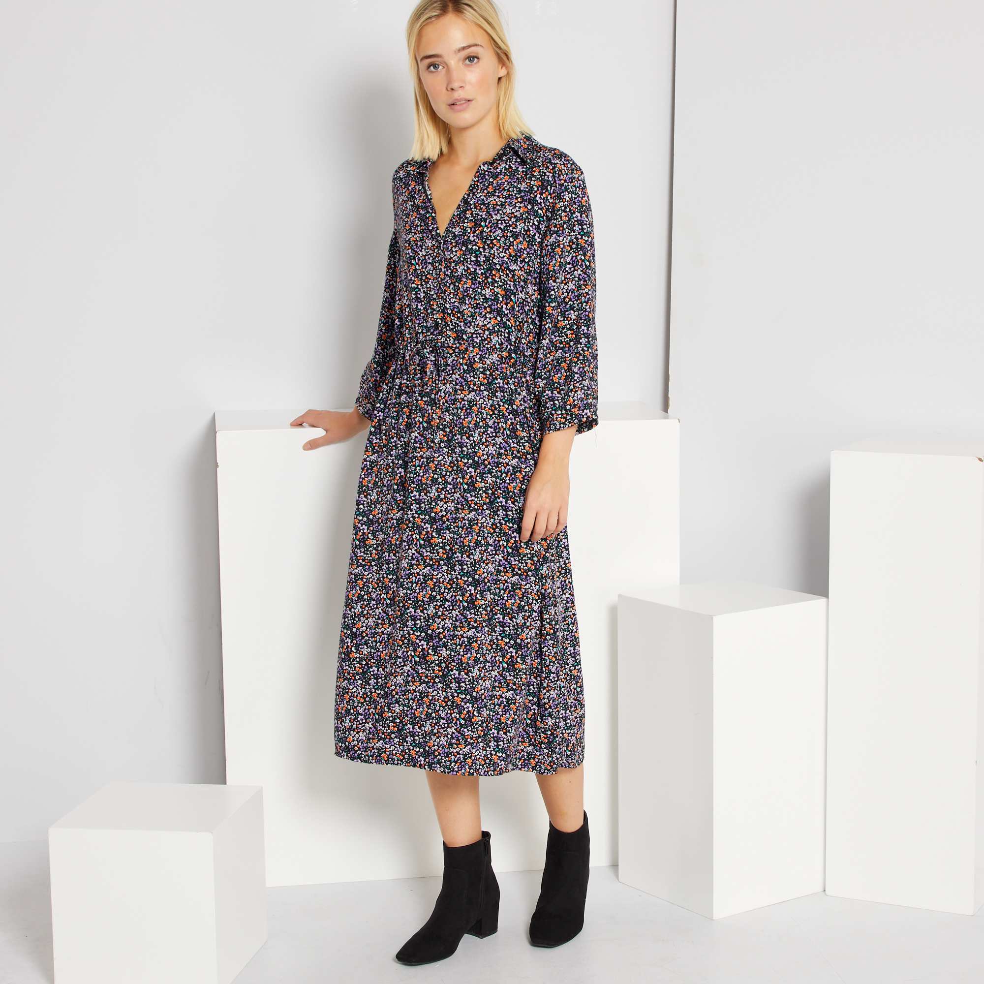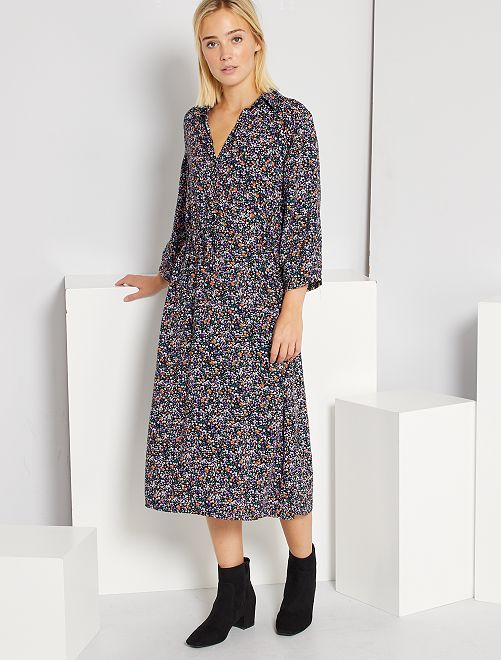 Um vestido tipo camisa com estampado florido!