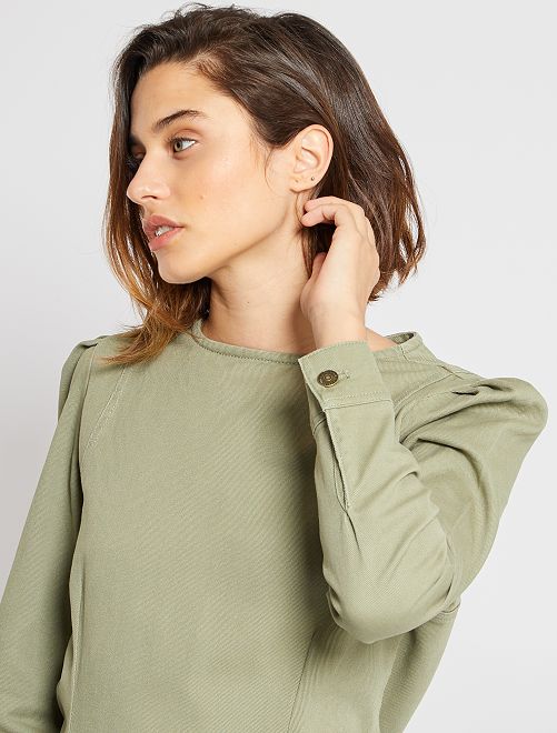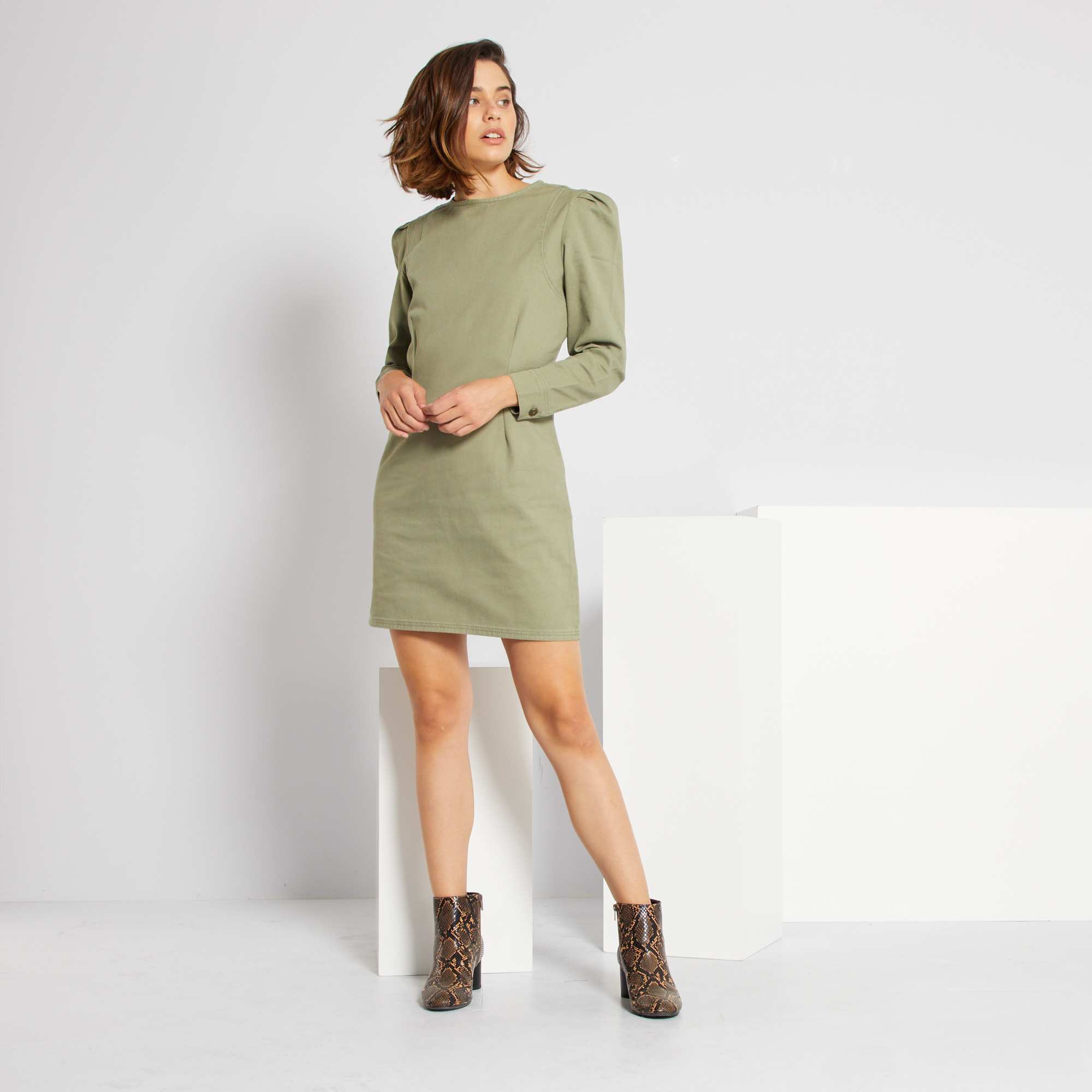 - Vestido curto em sarja