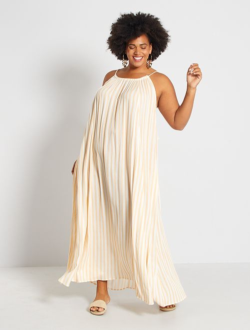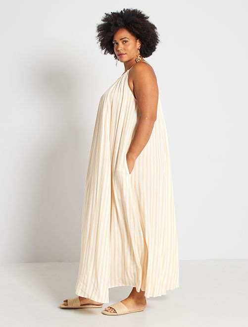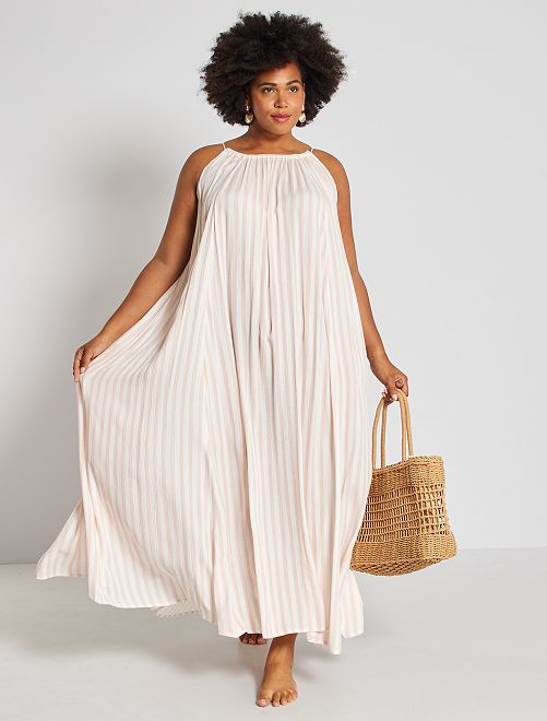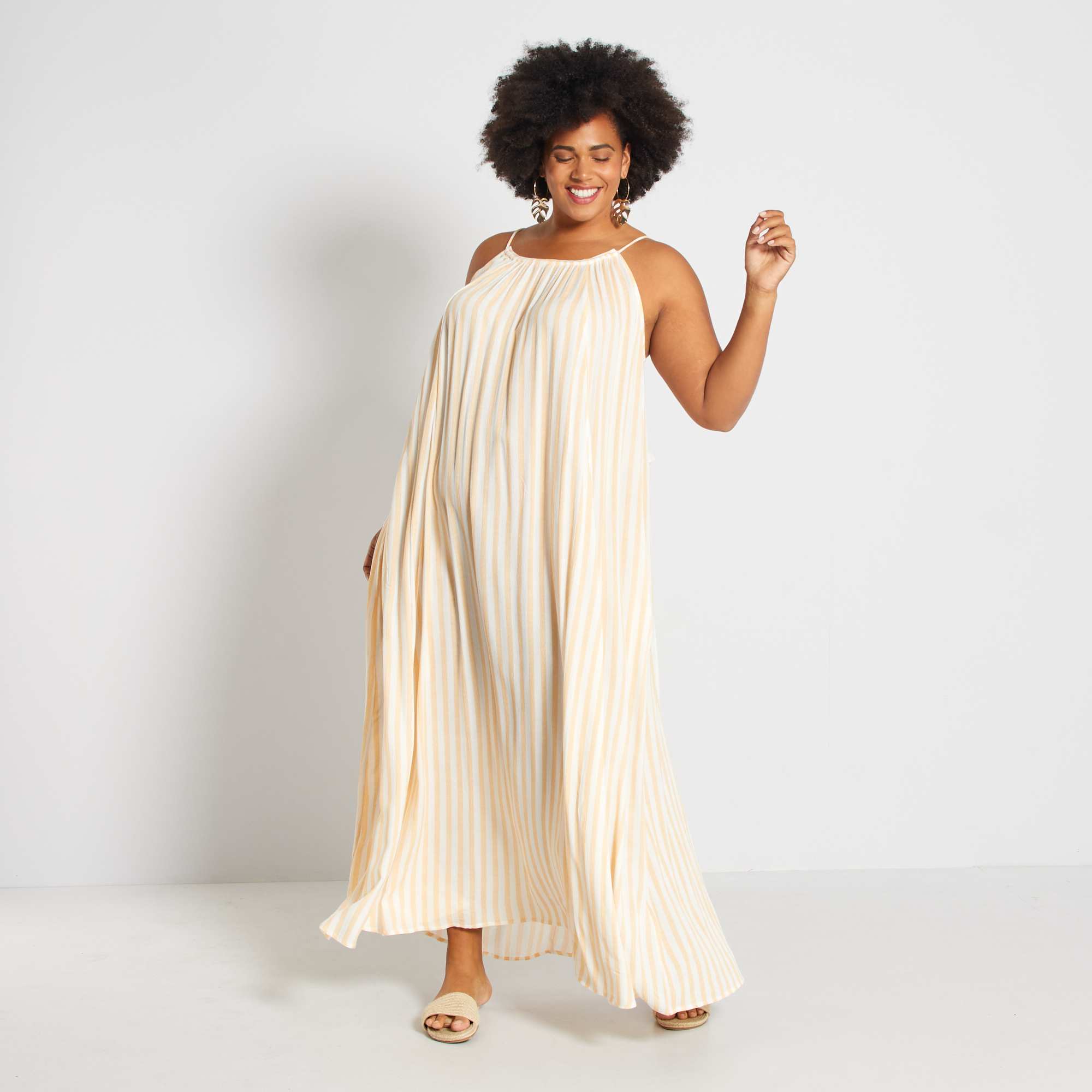 Cortado num belo tecido crepe leve, este vestido comprido vai sublimá-la na praia este verão!